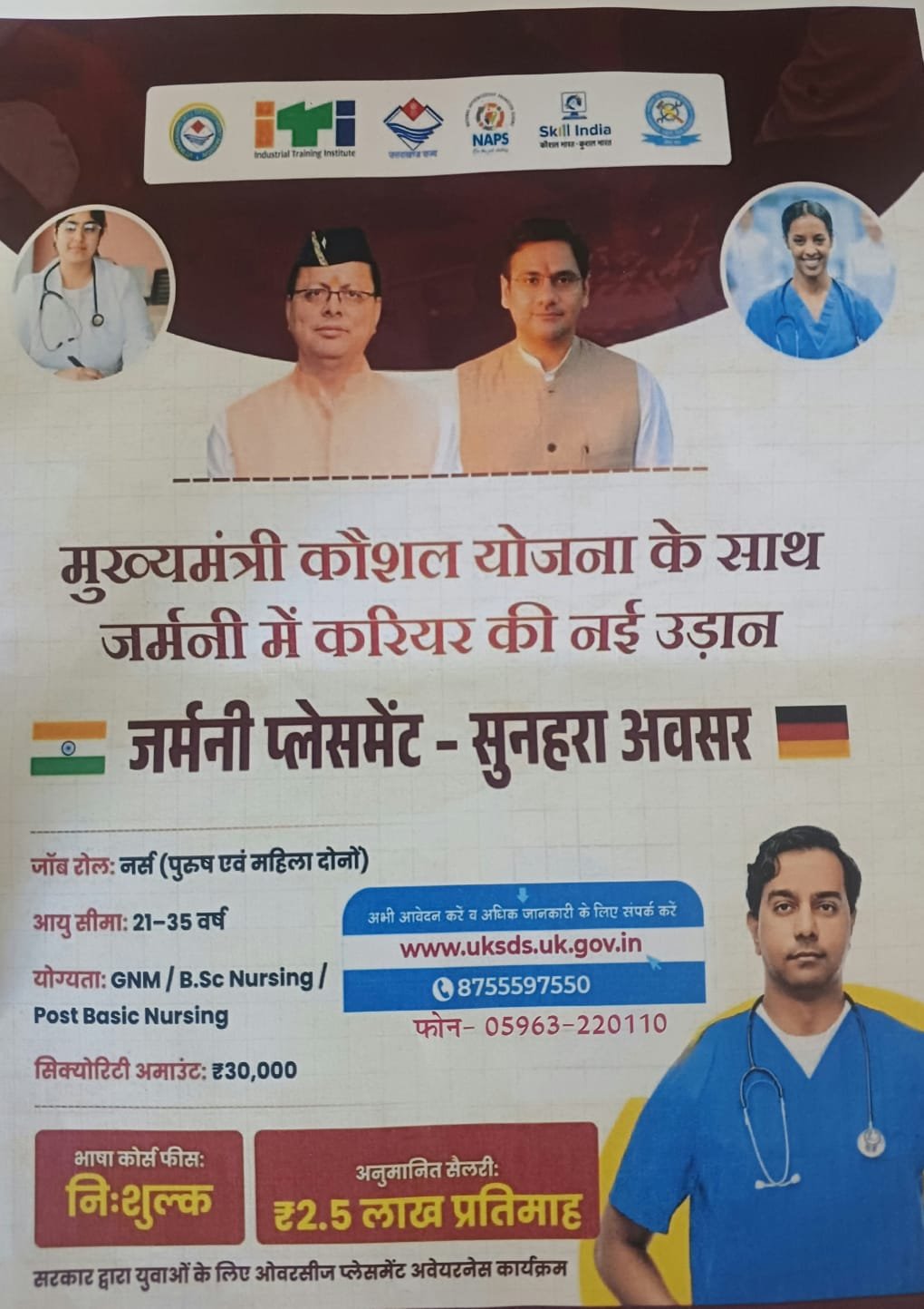कौशल विकास एवं सेवायोजन विभाग, उत्तराखंड के विदेश रोजगार प्रकोष्ठ द्वारा जनपद के योग्य युवाओं को विदेशों में रोजगार उपलब्ध कराने के लिए विदेशी भाषा प्रशिक्षण हेतु मोबाइलाइजेशन की प्रक्रिया संचालित की जा रही है। इस पहल के अंतर्गत अब नए प्रशिक्षण बैच प्रारंभ किए जा रहे हैं, जिनमें विभिन्न क्षेत्रों के लिए पात्र अभ्यर्थियों से आवेदन आमंत्रित किए गए हैं। इन प्रशिक्षण बैचों के अंतर्गत जर्मनी में रजिस्टर्ड नर्स (GNM/B.Sc Nursing, आयु 21 से 35 वर्ष) तथा जापान में केयर गिवर हेतु 12वीं पास, एएनएम, जीडीए (केवल महिला, आयु 18 से 27 वर्ष) एवं हॉस्पिटैलिटी (आतिथ्य) क्षेत्र में 12वीं पास व एचएम में डिप्लोमा/डिग्री धारक (आयु 18 से 28 वर्ष) अभ्यर्थी आवेदन कर सकते हैं।