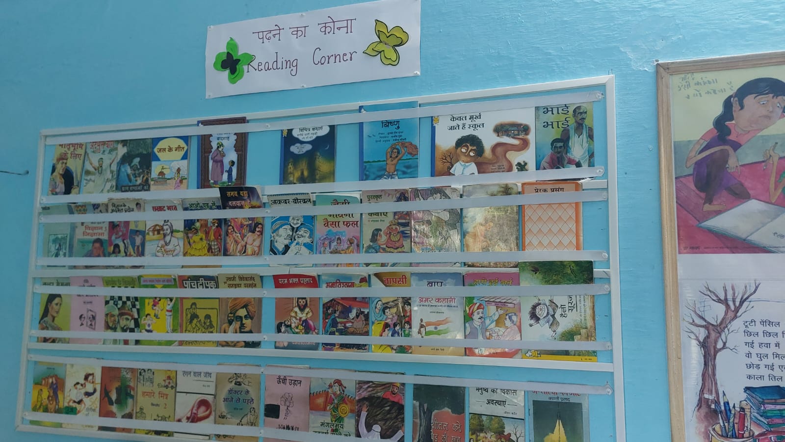 पुस्तकालय में किताबों का एक विशाल संग्रह है, जो बच्चों के लिए ज्ञान का खजाना है। रूम टू रीड द्वारा 1000 से अधिक, शिक्षा विभाग द्वारा 500 से अधिक, और अन्य स्रोतों से 1500 से अधिक पुस्तकें यहां उपलब्ध हैं। प्रथम पब्लिकेशन और अजीम प्रेमजी फाउंडेशन के योगदान ने भी इस पुस्तकालय को समृद्ध बनाया है। कुल मिलाकर, पुस्तकालय में 3000 से अधिक पुस्तकें उपलब्ध हैं, जो बच्चों को विभिन्न विषयों पर जानकारी प्राप्त करने और अपनी कल्पना को उड़ान देने में मदद करती हैं। प्रत्येक कक्षा में रीडिंग कॉर्नर स्थापित किए गए हैं, जहाँ पुस्तकों के शीर्षक और कवर स्पष्ट रूप से दिखाई देते हैं, जिससे बच्चों को अपनी पसंद की पुस्तकें चुनने में आसानी होती है। सभी पुस्तकों का विवरण पुस्तक पंजिका में दर्ज किया गया है, जो पुस्तकालय के सुचारू संचालन में सहायक है।
