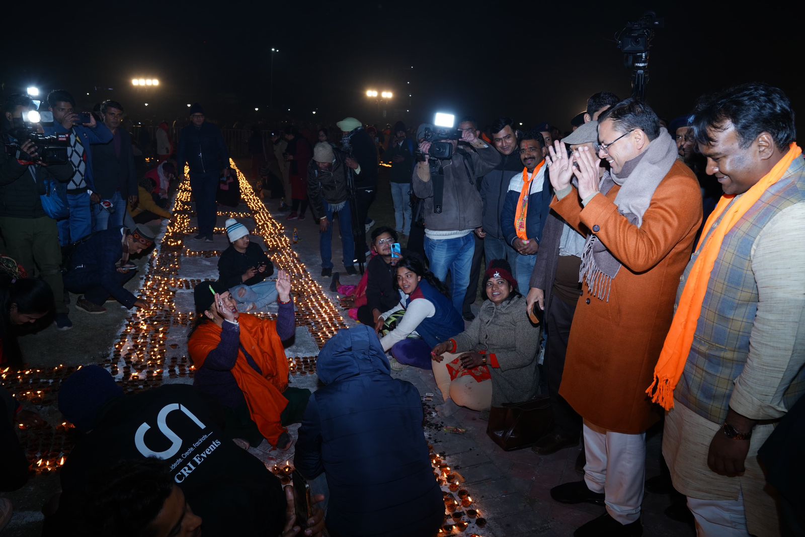 मुख्यमंत्री पुष्कर सिंह धामी ने कहा कि लंबे इंतजार के बाद भगवान श्री राम मंदिर की प्राण प्रतिष्ठा का शुभ अवसर हम सबको देखने को मिल रहा है। सौभाग्य भरे क्षण के हम सभी साक्षी होंगे। उन्होंने कहा बड़ी संख्या में माताओ बहनों ने दीपोत्सव कार्यक्रम में आकर भगवान श्री राम के प्रति अपनी आस्था दिखाई है। जन-जन के सहयोग एवं भक्ति के कारण 1.5 लाख से अधिक दीप प्रज्वलित किए गए हैं। मुख्यमंत्री ने कहा कि हम राम की कृपा से इस भव्य दीपोत्सव में आए हैं। उन्होंने कहा प्रधानमंत्री नरेंद्र मोदी के नेतृत्व में राम मंदिर बनाए जाने का मार्ग प्रशस्त हुआ है। आज उन्हीं के नेतृत्व में हमारा देश निरंतर प्रगति के पथ पर अग्रसर है। इस दौरान कार्यक्रम में सांसद माला राज्यलक्ष्मी शाह, भाजपा संगठन महामंत्री अजेय कुमार, एवं अन्य लोग मौजूद रहे।
