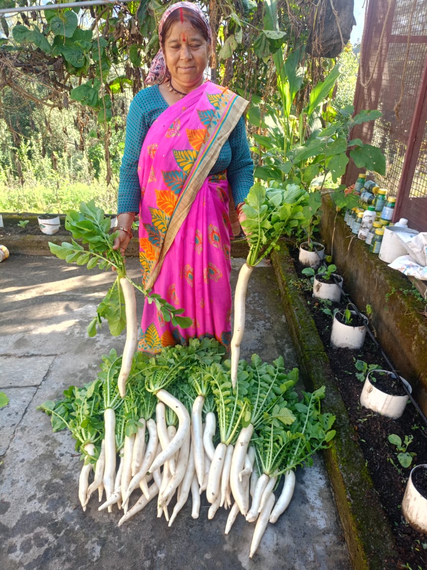 वर्ष 2023 में, ग्रामोत्थान परियोजना के नियमों एवं मानदंडों के अनुसार, बिछना देवी को व्यक्तिगत उद्यम, सूक्ष्म सिंचाई गतिविधि के लिए चयनित किया गया। इस उद्यम की कुल लागत ₹50,500/- रही, जिसमें ₹25,250/- बैंक ऋण, ₹10,250/- उनका व्यक्तिगत अंशदान तथा ₹15,000/- सहायता के रूप में प्राप्त हुए। बिछना देवी ने इस उद्यम के तहत सब्जियों का उत्पादन प्रारंभ किया और वर्तमान में वह मनसूना एवं उखीमठ के क्षेत्रीय बाजारों में अपनी सब्जियां बेच रही हैं। इस गतिविधि से उन्हें वार्षिक ₹70,000/- से ₹80,000/- तथा मासिक ₹6,000/- से ₹7,000/- तक की आय प्राप्त हो रही है।