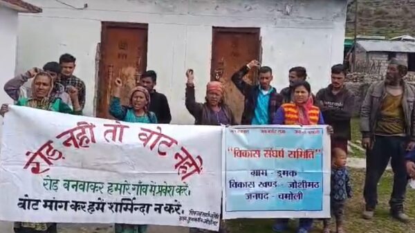 जोशीमठ (चमोली)। चमोली जिले के जोशीमठ विकास खंड के उर्गम घाटी के डुमक के ग्रामीणों ने गांव में सड़क न होने के कारण आक्रोशित होकर कहा है कि यदि किसी भी दल के प्रत्याशी को हमारा वोट चाहिए तो मोटर मार्ग और वाहन में बैठकर हमसे वोट मांग कर शर्मिंदा न करें।