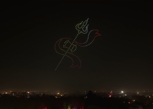 इस अद्भुत कार्यक्रम में “मेक इन इंडिया” के तहत निर्मित 300 से अधिक ड्रोन शामिल हुए, जिन्होंने आकाश में दर्जनों आकर्षक आकृतियाँ बनाकर वातावरण को आलोकित कर दिया। शो की शुरुआत देवभूमि उत्तराखंड को समर्पित एक दृश्य से हुई, जिसमें भगवान शिव की जटाओं से मां गंगा के अवतरण को खूबसूरती से दर्शाया गया। इसके बाद “उत्तराखंड राज्य स्थापना के 25 वर्ष”, “ॐ गैलेक्सी”, “त्रिशूल और डमरू” तथा केदारनाथ और बद्रीनाथ धाम के भव्य दृश्यों को आकाश में प्रस्तुत किया गया।