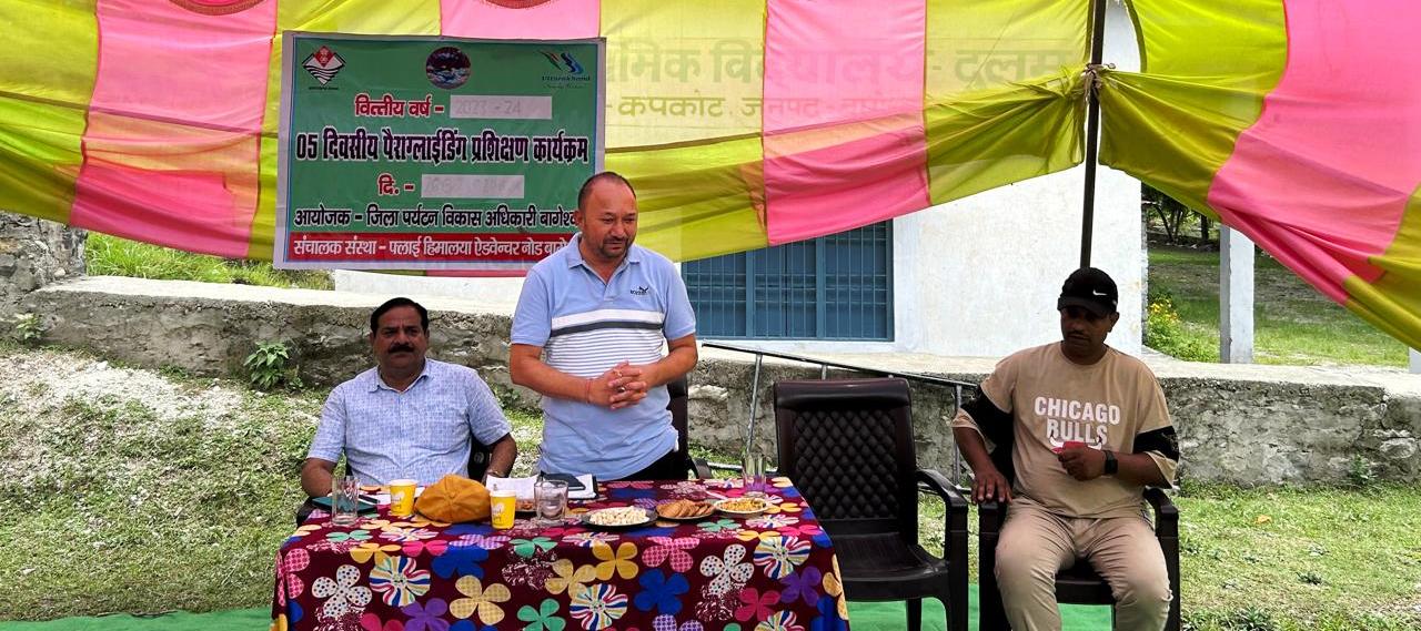 कपकोट/बागेश्वर :  कपकोट घाटी में पैराग्लाइडिंग के गुर सिख रहे युवा। स्वरोजगार की दिशा में सराहनीय पहल। बुधवार को पर्यटन विभाग के तत्वावधान में पांच दिवसीय पैराग्लाइडिंग प्रशिक्षण का शुभारंभ ब्लॉक प्रमुख गोविंद सिंह दानू ने किया। बतौर मुख्य अतिथि ब्लॉक प्रमुख गोविंद सिंह दानू ने प्रशिक्षण शिविर में प्रतिभाग कर रहें युवाओं को सम्बोधित करते हुए कहा कि जिले में साहसिक खेल के माध्यम से स्वरोजगार की दिशा में अपार सम्भावनाएं है। पांच दिन तक चलने वाले इस प्रशिक्षण में पैराग्लाइडिंग की बारीकियों को सीखे