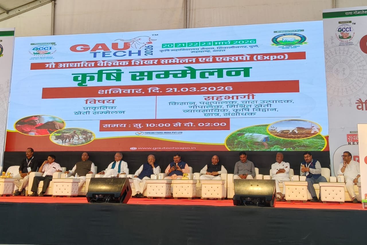 पुणे : महाराष्ट्र के पुणे में आयोजित गोटेक-2026 वैश्विक शिखर सम्मेलन के दूसरे दिन गो आधारित पंचगव्य उत्पादों की प्रदर्शनी का निरीक्षण किया गया। इस दौरान देशभर से आए गौसेवकों, उद्यमियों और स्वयं सहायता समूहों द्वारा तैयार किए गए विभिन्न उत्पादों को सराहा गया।