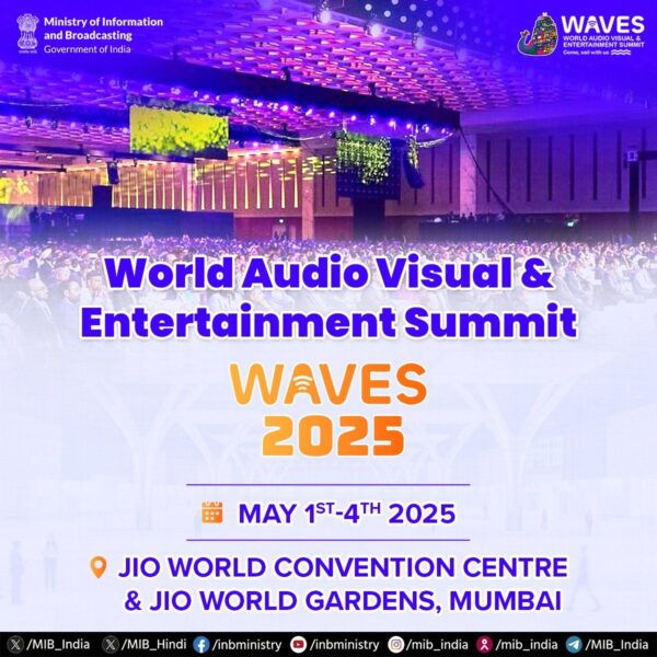 वेव्स प्रमुख वैश्विक कार्यक्रम है जो पूरे मीडिया और मनोरंजन (M&E) क्षेत्र को एक साथ लाता है। इसका आयोजन 1 मई से 4 मई 2025 तक मुंबई, महाराष्ट्र में किया जाएगा। इसका उद्देश्य भारत के M&E उद्योग को वैश्विक बाज़ार से और वैश्विक M&E उद्योग को भारतीय बाज़ार से जोड़ना है, जिससे विकास, सहयोग और नवाचारों को बढ़ावा मिले। वेव्स का लक्ष्य मीडिया और मनोरंजन उद्योग के लिए वैश्विक अभिसरण शिखर सम्मेलन बनना है। यह भारत की रचनात्मक शक्ति को बढ़ाने के लिए तैयार है, जो सामग्री निर्माण, बौद्धिक संपदा और तकनीकी नवाचार के केंद्र के रूप में इसकी स्थिति को बढ़ाएगा। फोकस में निम्नलिखित उद्योग और क्षेत्र शामिल हैं – प्रसारण, प्रिंट मीडिया, टेलीविजन, रेडियो, फिल्म, एनिमेशन, विज़ुअल इफेक्ट्स, गेमिंग, कॉमिक्स, ध्वनि और संगीत, विज्ञापन, डिजिटल मीडिया, सोशल मीडिया प्लेटफ़ॉर्म, जनरेटिव एआई, संवर्धित वास्तविकता (AR), आभासी वास्तविकता (VR) और विस्तारित वास्तविकता (XR)।