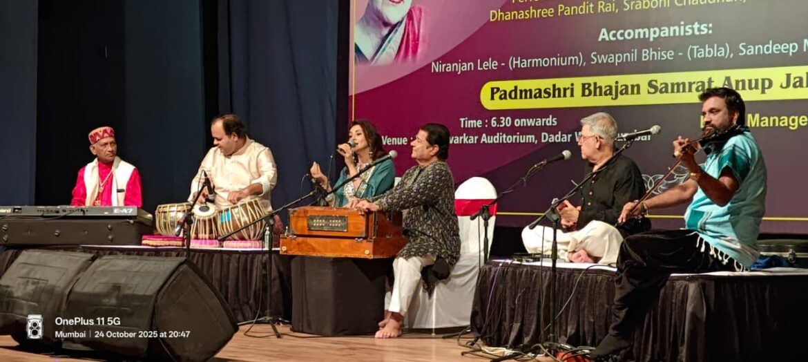 मुंबई: जलोटा वेलफेयर फाउंडेशन के तत्वावधान में पद्मभूषण शोभा गुर्टू जी की जन्म शताब्दी के उपलक्ष्य में एक विशेष संगीतमय श्रद्धांजलि समारोह का आयोजन किया गया। यह कार्यक्रम 24 अक्टूबर, शुक्रवार को वीर सावरकर ऑडिटोरियम, दादर पश्चिम, मुंबई में आयोजित किया गया। कार्यक्रम का शुभारंभ शाम 6:30 बजे से हुआ।
