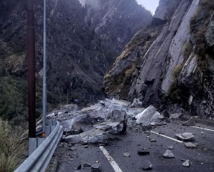 चमोली। शुक्रवार रात तक पहाड़ों में हुई बारिश और बर्फबारी के बाद पहाड़ टूटने का सिलसिला भी शुरू हो गया है शुक्रवार रात को चमोली जिले में भारी वर्षा के चलते बद्रीनाथ नेशनल हाईवे बाधित हो गया है। स्थानीय निवासी रूपेश पवार के अनुसार, गोविंद घाट के समीप ‘पिनोला’ नामक स्थान पर पहाड़ का एक बड़ा हिस्सा टूटकर सड़क पर आ गिरा, है जिससे मार्ग पूरी तरह अवरुद्ध हो गया है। बारिश के कारण पहाड़ों से बड़े-बड़े पत्थर गिरे है है, उन्होंने कहा की मशीन लगाकर ही पत्थरों को हटाया जा सकता है क्योंकि पत्थर का भी बड़े सड़क पर गिरे हैं। हालांकि बारिश और बर्फबारी के बाद पहाड़ों में मौसम साफ हो गया है उम्मीद है कि जल्दी नेशनल हाईवे सुचारु कर दिया जाएगा
