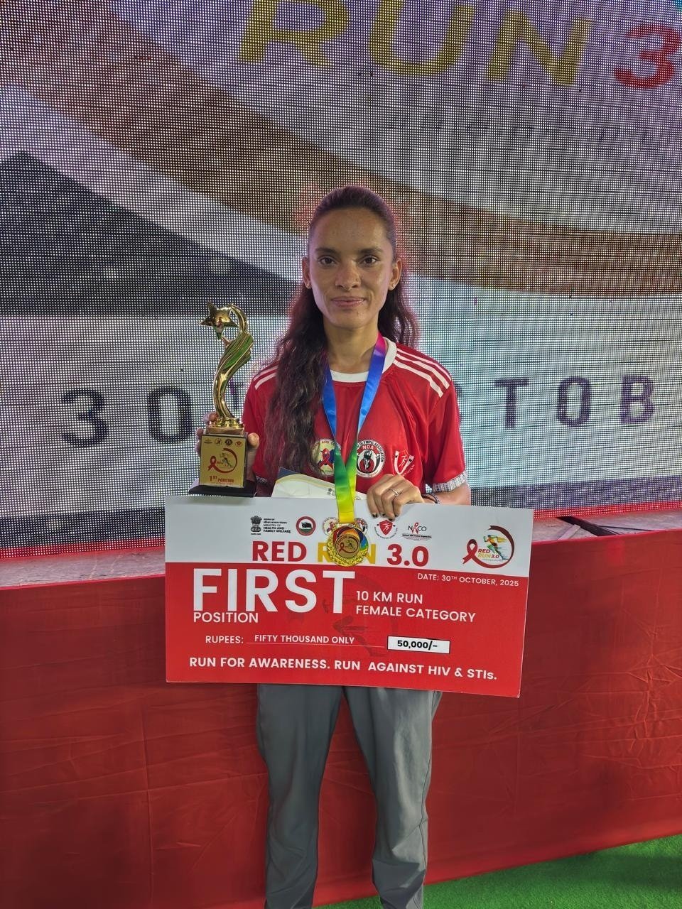 अनीशा ने 10 किलोमीटर दौड़ में शानदार प्रदर्शन करते हुए अपनी दृढ़ इच्छाशक्ति, फिटनेस और आत्मविश्वास के दम पर सभी प्रतिस्पर्धियों को पीछे छोड़ दिया।
