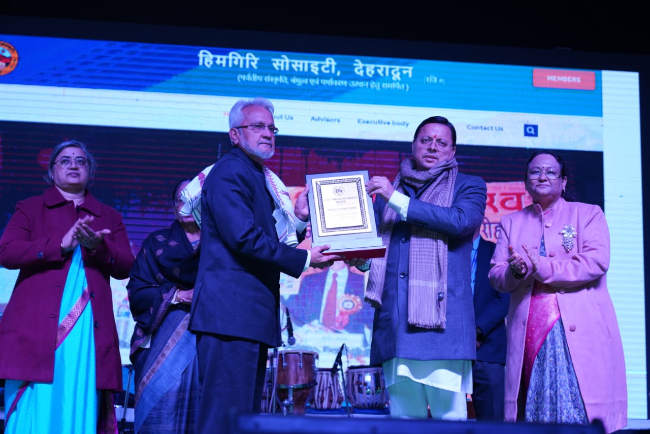 देहरादून : मुख्यमंत्री पुष्कर सिंह धामी ने शनिवार को बी.आर. अम्बेडकर स्टेडियम कौलागढ़ रोड देहरादून में ओएनजीसी एवं उत्तराखंड सरकार के सहयोग से पर्वतीय सरोकारों के लिए समर्पित” हिमगिरि सोसाइटी” द्वारा आयोजित दो दिवसीय ‘हिमगिरी महोत्सव-2024″ का शुभारम्भ किया। इस अवसर पर मुख्यमंत्री द्वारा विज्ञान एवं प्रोद्योगिकी के क्षेत्र में डॉ. दिनेश कुमार असवाल, चित्रकला के क्षेत्र में प्रो. शेखर चंद्र जोशी तथा पर्यावरण के क्षेत्र में श्री सचिदानंद भारती को “हिमगिरि गौरव सम्मान-2024″ तथा हिमगिरि के संस्थापक सदस्य दिनेश कुमार पांडे को तेल एवं गैस अन्वेषण के क्षेत्र में उनके उल्लेखनीय कार्यों के लिये लाइफ टाइम अचीवमेंट पुरस्कार से भी सम्मानित किया गया।