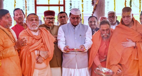हरिद्वार। मुख्यमंत्री पुष्कर सिंह धामी ने शनिवार को कनखल स्थित जगद्गुरु शंकराचार्य आश्रम में जगदगुरू शंकराचार्य स्वामी राजराजेश्वराश्रम महाराज से भेंट कर उनका आशीर्वाद प्राप्त किया। जगद्गुरु शंकराचार्य आश्रम में, शंकराचार्य स्वामी राजराजेश्वराश्रम महाराज के साथ मुख्यमंत्री पुष्कर सिंह धामी हवन यज्ञ में भी शामिल हुए। जगद्गुरु शंकराचार्य आश्रम कनखल में आयोजित श्रीमद्भागवत कथा के अवसर पर शनिवार को स्वामी प्रकाशानंद के षोडश निर्वाण महोत्सव के अवसर पर विधि-विधान से हवन यज्ञ व भंडारे का आयोजन किया गया, इसमें मुख्यमंत्री श्री पुष्कर सिंह धामी सहित प्रदेश के कैबिनेट मंत्री सतपाल महाराज, सुबोध उनियाल, सांसद डॉ.रमेश पोखरियाल निशंक, व विधायकगण शामिल हुए। सभी ने हवन यज्ञ में आहूतियां डाली और प्रदेश में कॉमन सिविल कोड लागू होने की खुशी में भंडारे का प्रसाद ग्रहण किया।