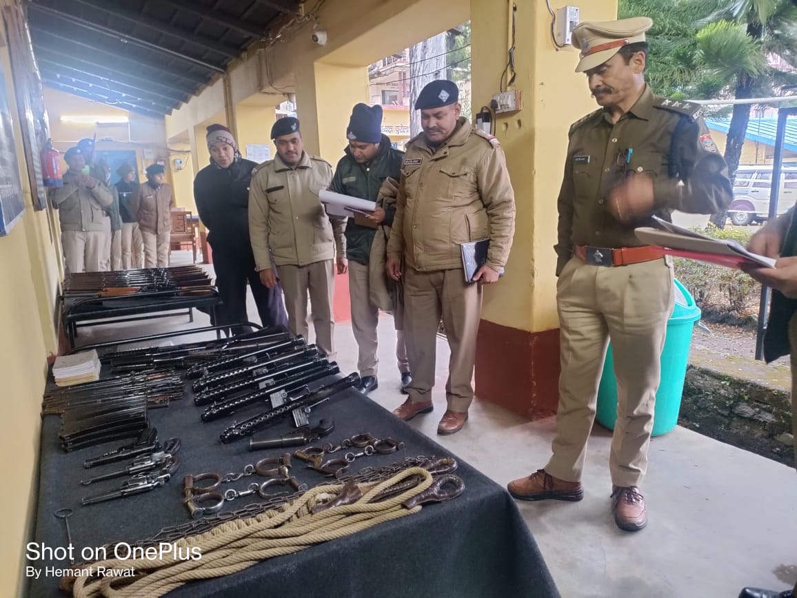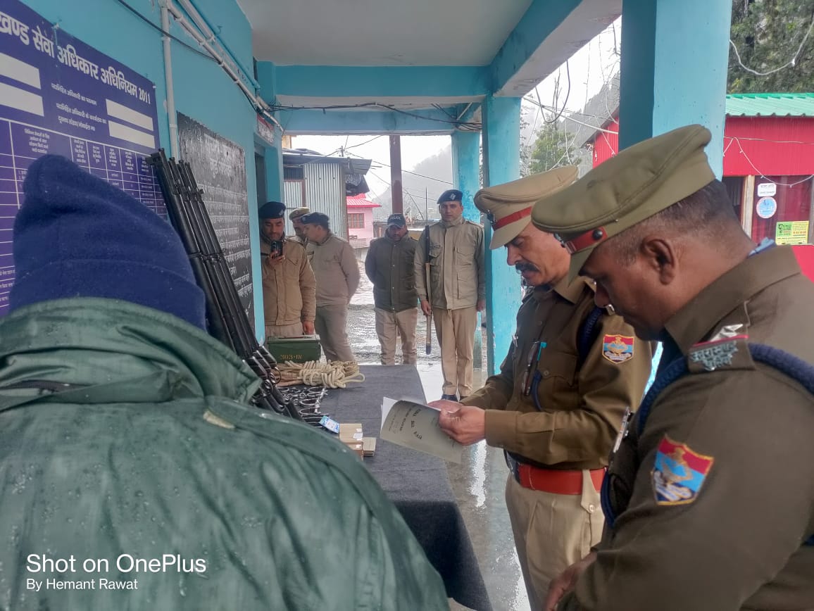 उत्तरकाशी (कीर्ति निधि सजवाण): पुलिस उपाधीक्षक बड़कोट, सुरेंद्र सिंह भण्डारी द्वारा थाना पुरोला व मोरी का अर्द्धवार्षिक निरीक्षण किया गया। निरीक्षण के दौरान उनके द्वारा थानों पर आपदा उपकरणो तथा हथियारो को चैक कर पुलिस जवानों की वेपन हैंडलिंग जांची गयी। थाना व भोजनालय की साफ-सफाई का निरीक्षण करने के बाद उनके द्वारा थाना कार्यालय के रजिस्टर व पत्रावालियों की बारिकी से अवलोकन किया गया। रजिस्टर तथा पत्रावलियों को सही तरीके से मेंटेन करने के निर्देश दिये गये। इस दौरान उनके द्वारा पुलिस अधिकारी/कर्म0गणों का सम्मेलन लेकर सभी की ऑफिसियल व व्यक्तिगत समस्याएं पूछी गयी। इस दौरान उनके द्वारा SO मोरी एवं SO पुरोला को क्षेत्र में अवैध नशे की रोकथाम तथा वांछित/वारंटियों की गिरफ्तारी हेतु धरपकड़ अभियान चलाने के निर्देश दिये गये। आगामी लोकसभा सामान्य निर्वाचन-2024 के परिपेक्ष्य में उनके द्वारा सभी अधिकारी व कर्मचारियों को चुनाव को निष्पक्ष एवं शांतिपूर्ण तरीके से सम्पन्न करवाने के साथ चुनाव के दौरान अवैध/संदिग्ध गतिविधियों की रोकथाम तथा पुलिस चैकिंग के सम्बन्ध में प्रशिक्षण दिया गया।