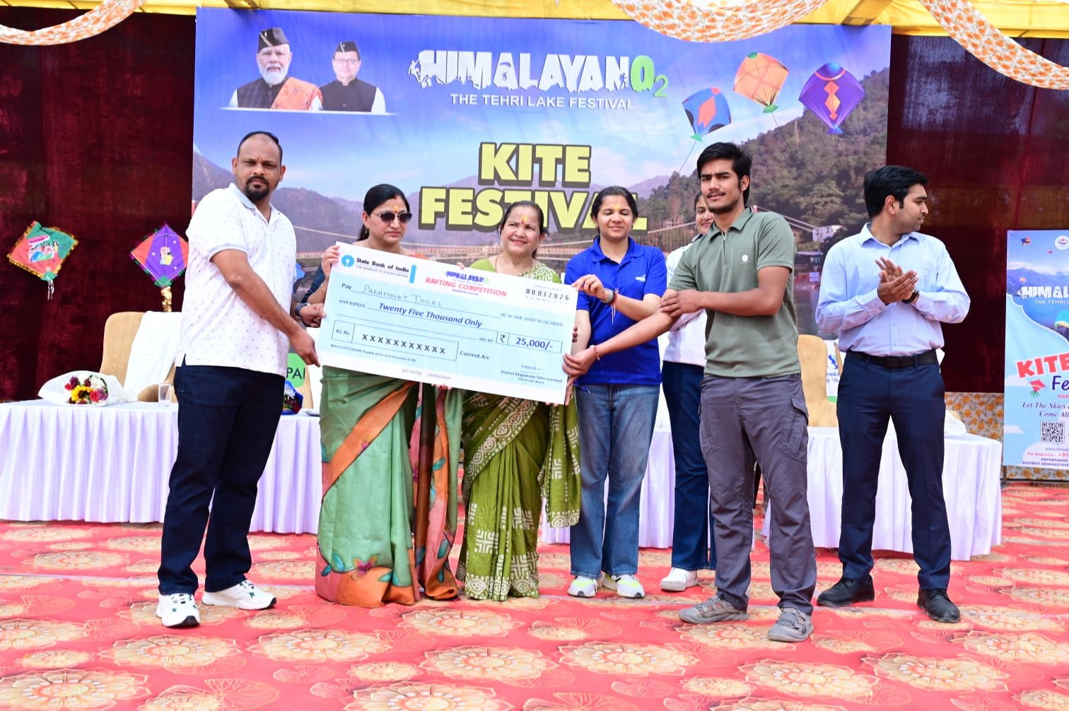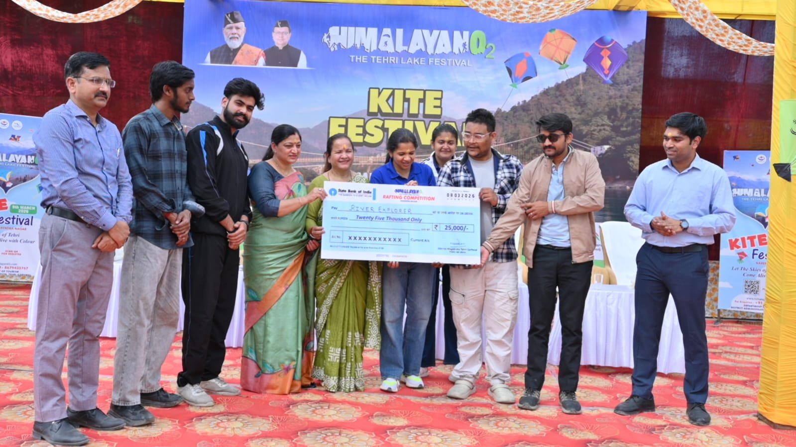 कार्यक्रम में टिहरी झील महोत्सव के तहत कल रविवार को करायी गयी रीवर राफ्टिंग में विजेताओ को चेक वितरण किये गये जिसमें टूरिस्ट कैटागिरी में 25 टीमों ने पंजीकरण करवाया जिसमें गढ़वाल मंडल विकास निगम की टीम प्रथम स्थान पर संगम एडवेंचर द्वितीय तथा रीवर एक्सपोलर ने तृतीय स्थान प्राप्त किया । वहीं प्रोपेशनल कैटागिरी में 98 टीमों ने पंजीकरण कराया जिसमें रेड चिल्ली ने प्रथम, नेचर रेपिड एक्सपेंडेसन द्वितीय तथा पैरा माउण्ट टूर ने तीसरा स्थान प्राप्त किया ।