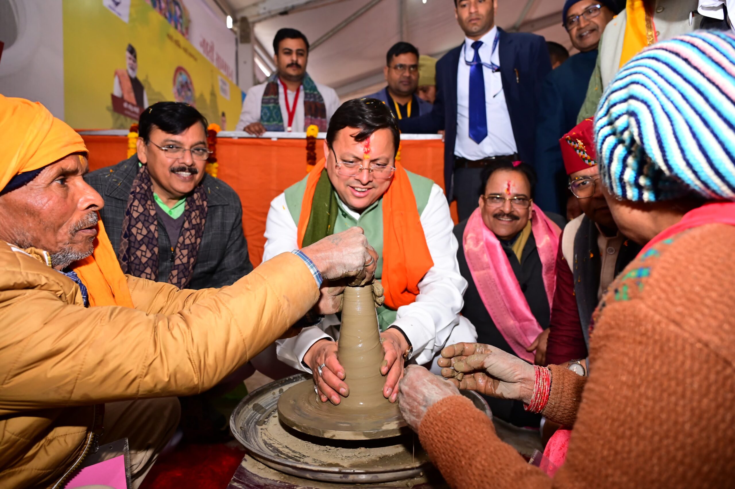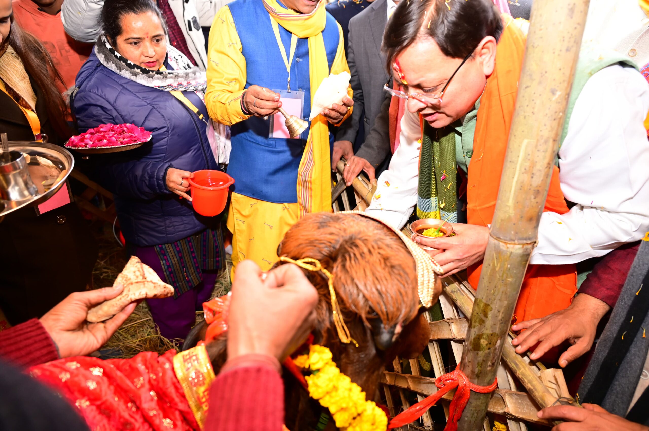 मुख्यमंत्री का कार्यक्रम स्थल के मुख्य गेट पर पांच कन्याओं द्वारा तिलक और पुष्प वर्षा के साथ स्वागत और अभिनंदन किया गया। इस अवसर पर मुख्यमंत्री ने पशुपालन विभाग के स्टॉल पर गिर प्रजाति की गौ माता का पूजन कर जनपदवासियों की खुशहाली, बेहतर स्वास्थ्य और समृद्धि की कामना की। स्टॉलों के अवलोकन के दौरान उत्तराखंड राज्य आजीविका मिशन के स्टॉल पर मुख्यमंत्री ने चरखा में कताई कर स्वयं सहायता समूह की महिलाओं का मनोबल बढ़ाया। उन्होंने विकसित भारत संकल्प यात्रा से लाभान्वित लाभार्थियों के साथ सीधा संवाद भी किया। मुख्यमंत्री ने मिट्टी के बर्तन और तुलसीमाला स्टॉल पर महिलाओं के इस स्वरोजगारपरक गतिविधि की सराहना करते हुए स्वयं भी इस पर अपना हाथ आजमाया और उन्हें इस कला को आगे बढ़ाने के लिए प्रोत्साहित किया। इस अवसर पर मुख्यमंत्री ने नव दुर्गा की प्रतीक कन्याओं का पूजन कर प्रदेश की सुख-शांति, खुशहाली, चहुमुखी विकास की कामना की।