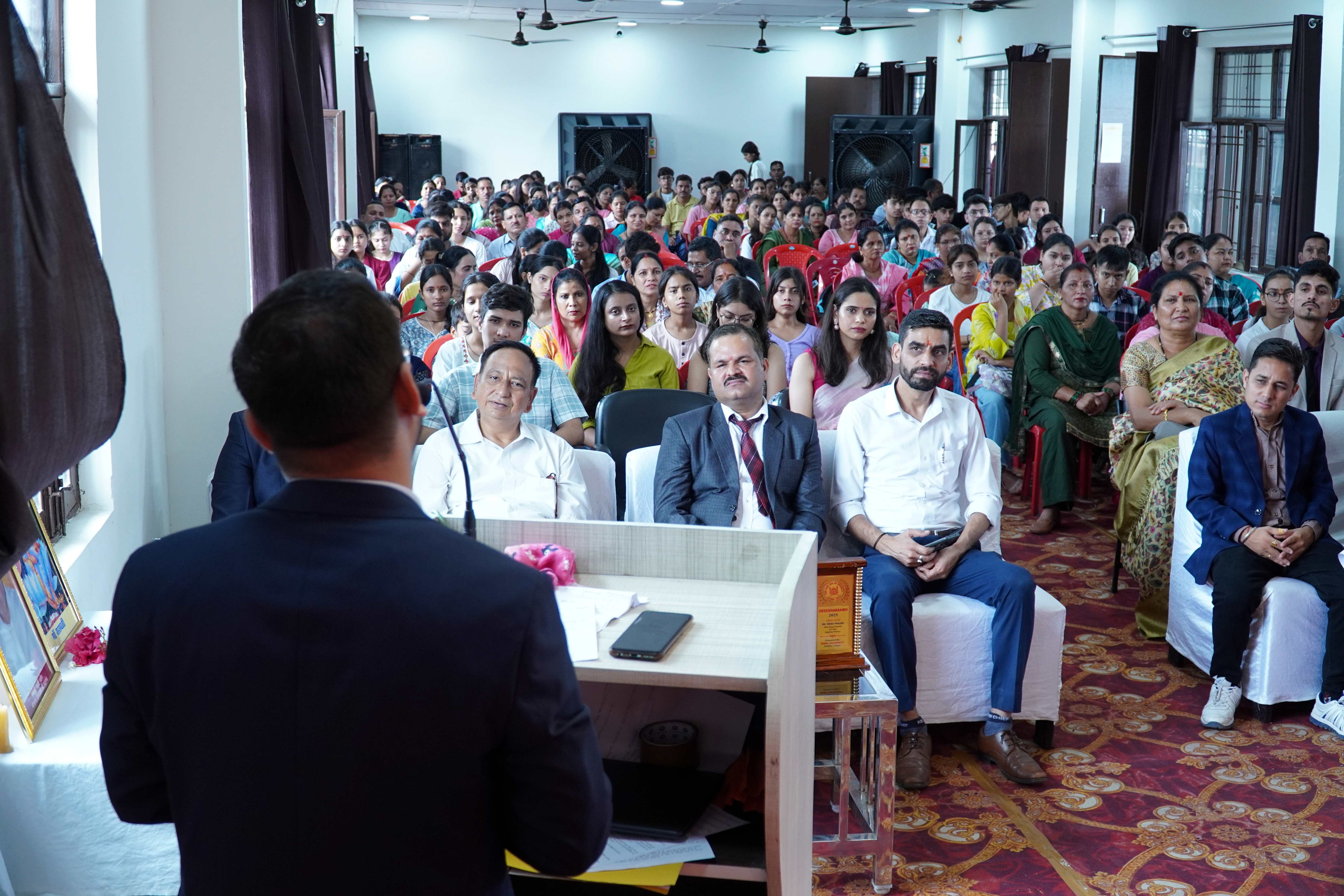कोटद्वार : पदमपुर स्थित श्री गुरु राम राय पैरामेडिकल-नर्सिंग कॉलेज में आयोजित विद्यार्थियों एवं अभिभावकों का इंडक्शन (ओरिएंटेशन) कार्यक्रम सम्पन्न हुआ। श्री गुरु राम राय विश्वविद्यालय एवं श्रीमहंत इन्द्रेश अस्पताल, देहरादून द्वारा किये जा रहे कार्यो की विडियो क्लिप दिखाकर की गई। कार्यक्रम का शुभारंभ मुख्य अतिथि डॉ. विकास थलेडी द्वारा दीप प्रज्वलन कर किया गया। इसके पश्यचात् छात्रों द्वारा सरस्वती वंदना प्रस्तुत की गई और कार्यक्रम में इंटरएक्टिव सेशन्स, सांस्कृतिक प्रस्तुतियां दी गई। कार्यक्रम का संचालन डॉ. शिवी शर्मा एवं श्वेता बिष्ट द्वारा किया गया। कार्यक्रम के प्रारम्भ में प्रणव राज बमराड़ा द्वारा प्रजेन्टेशन के माध्यम से कॉलेज के संचालन समिति एवं फैक्ल्टी का परिचय नवागतुक छात्रों एवं उनके अभिभावकों से करवाया।
