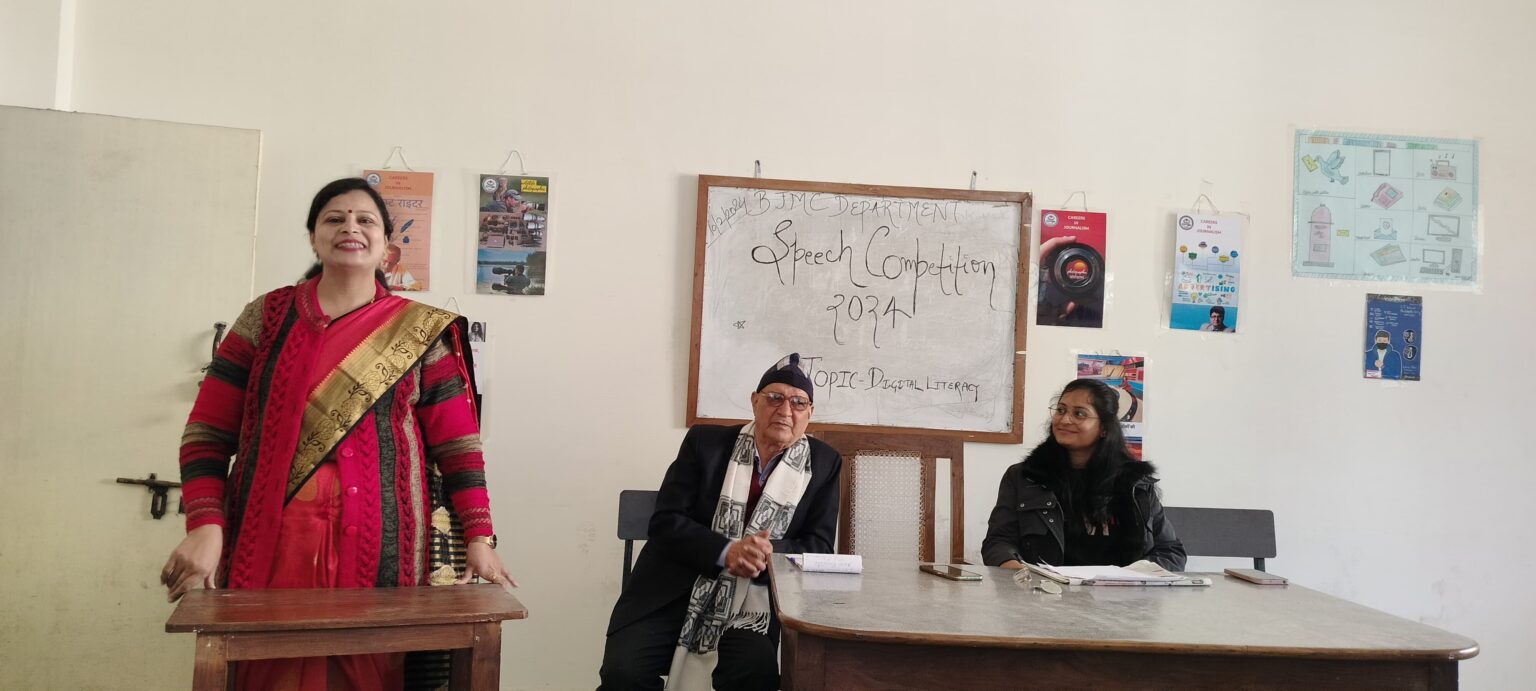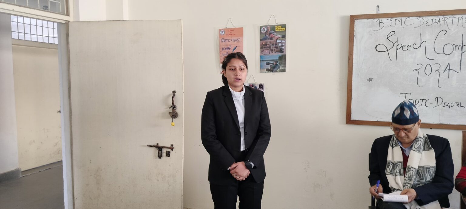 कोटद्वार : डॉ. पीतांबर दत्त बड़थ्वाल हिमालयन राजकीय स्नातकोत्तर महाविद्यालय कोटद्वार के पत्रकारिता एवं जनसंचार विभाग द्वारा डिजिटल साक्षरता विषय पर भाषण प्रतियोगिता का आयोजन किया गया। जिसमें विभाग के सभी छात्र छात्राओं ने डिजिटल साक्षरता विषय पर अपने- अपने विचार व्यक्त करे। सभी छात्र छात्राओं ने अपने अपने विचार व्यक्त करते हुए डिजिटल साक्षरता के बारे में जानकारी दी और बताया कि कैसे आज के डिजिटल युग में बिना डिजिटल साक्षरता के लोग डिजिटल टेक्नोलॉजिस का सही तरह से इस्तेमाल नहीं कर पा रहे हैं। प्रतियोगिता में प्रथम स्थान तनुजा, द्वितीय स्थान पर मानसी और तृतीय स्थान पर कोमल रही। विभाग समन्वयक प्रोफेसर प्रीति रानी ने बड़ी गहनता से बताया कि डिजिटल साक्षरता का आज के डिजिटल युग में कितना बड़ा महत्व है और कैसे हम सभी डिजिटल साक्षर होकर समाज के विकास के प्रति अधिक जागरूक हो सकते हैं। इस अवसर पर विभाग की अन्य प्राध्यापकों जनक नंदिनी तथा चक्रधर कंडवाल ने भी डिजिटल साक्षरता के विषय पर बोलते हुए छात्र-छात्राओं को इसके लाभ तथा हानि से अवगत कराया। इस अवसर पर पत्रकारिता एवं जनसंचार विभाग के सभी छात्र-छात्र उपस्थित रहे।