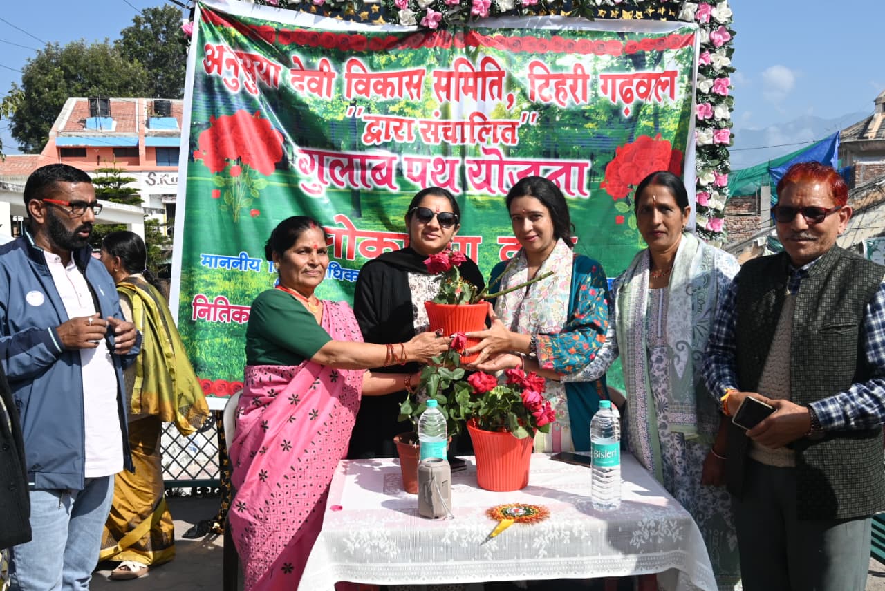 टिहरी : आज रविवार को जिलाधिकारी टिहरी गढ़वाल नितिका खण्डेलवाल ने सांई चौक नई टिहरी पहुंचकर अनुसूया देवी विकास समिति टिहरी द्वारा संचालित गुलाब पथ योजना का दीप प्रज्वलित कर लोकार्पण किया। इस दौरान उन्होंने रिबन काटकर गुलाब के पौधे में जल सींचन किया।