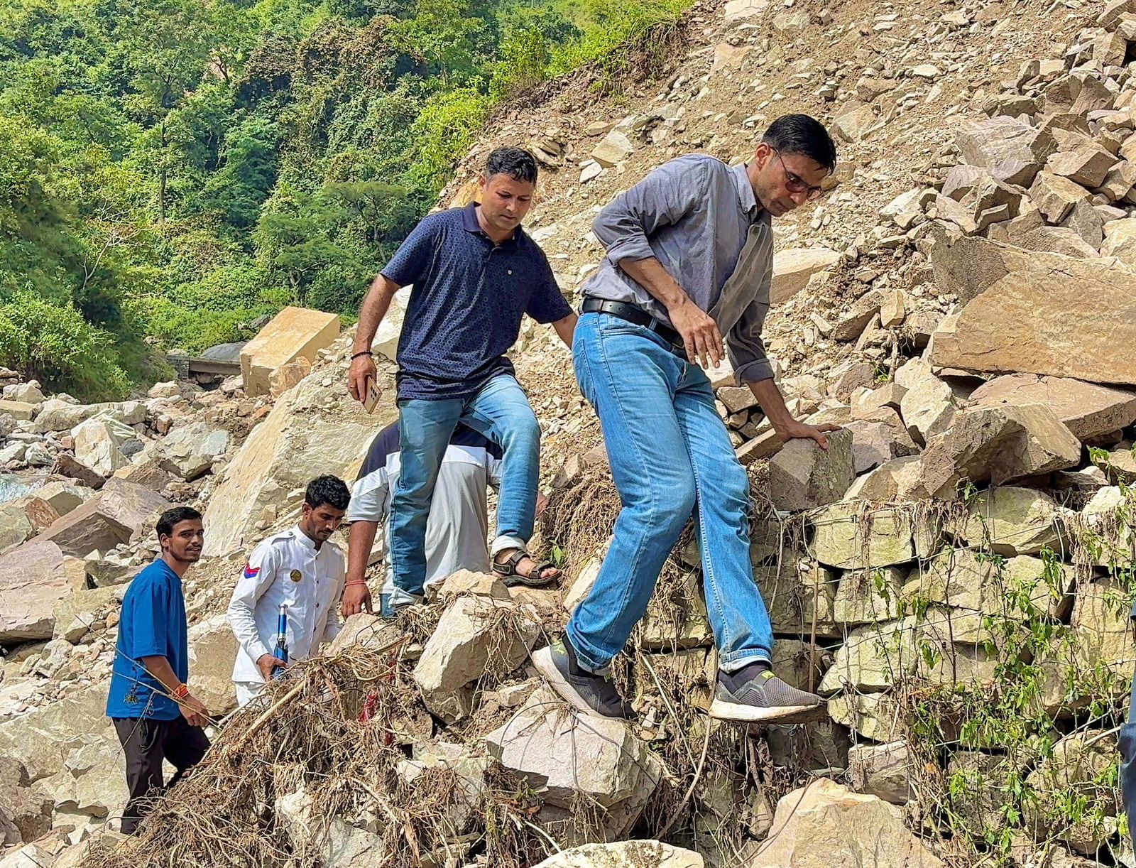 जिले का ऐसा ही क्षेत्र फुलेत, छमरोली, सिल्ला, क्यारा, सिमयारी सड़क वाशआउट होने से जनपद मुख्यालय के सम्पर्क से कट हो गए थे जहां हेली के माध्यम से रसद सामग्री भिजवाई जा रही थी। जिलाधिकारी ने हेली सेवा का विकल्प छोड़ विकट सड़क मीलों पैदल मार्ग को चुना तथा मालदेवता से सेरकी-सिल्ला, भैंसवाड़ गांव छमरोली के कुछ हिस्से तक विकट सड़क तथा उसके उपरान्त लगभग 12 किमी गांव-गांव पदैल चल घर से लेकर खेत-खलियान तक आपदा से हुए नुकसान का जायजा लिया तथा राहत बचाव कार्य क्षति का आंकलन एवं मुआवजा वितरण के लिए विशेष तहसीलदार,बीडीओ सहित सम्बन्धित विभागों के अधिकारियों एवं कार्मिंको की अग्रिम आदेशों तक ड्यूटी लगा दी है जो खर्चे का पूर्ण आंकलन तथा मुआवजा वितरण तक आपदाग्रस्त क्षेत्र में रहेंगे।