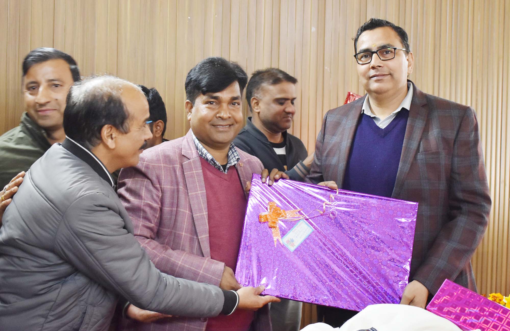 चमोली : अपर जिलाधिकारी चमोली डॉ. अभिषेक त्रिपाठी के मुख्य विकास अधिकारी टिहरी के पद पर पदोन्नत एवं स्थानांतरित होने पर शुक्रवार को उनको विदाई दी गई। जिला सभागार में आयोजित विदाई समारोह में जिलाधिकारी हिमांशु खुराना ने कहा कि शासकीय कार्यो में स्थानांतरण एक नैतिक प्रक्रिया है। अधिकारियों को जिस स्थान पर तैनाती मिले उसे पूरी लगन के साथ कार्य करना चाहिए। जनपद चमोली में एडीएम के कार्यकाल की सराहना करते हुए जिलाधिकारी ने उन्हें पुष्प गुच्छ, प्रतीक चिन्ह एवं शॉल देकर सम्मानित किया और उनके उज्जवल भविष्य की कामना की। इस अवसर पर मुख्य विकास अधिकारी अभिनव शाह, एसडीएम आरके पांडेय, सीटीओ मामूर जहां, एपीडी केके पंत सहित कलेक्ट्रेट परिसर के समस्त अधिकारी एवं कार्मिक मौजूद थे।