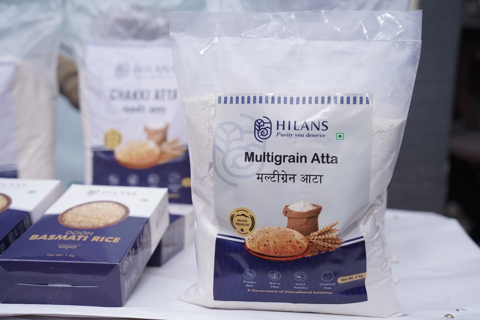 इस अवसर पर पारंपरिक दून बासमती चावल, गेहूं आटा, मक्का आटा, मल्टीग्रेन आटा तथा मंडुवा (फिंगर मिलेट) आटा का लोकार्पण किया गया। ये सभी उत्पाद सक्षम क्लस्टर लेवल फेडरेशन, स्वाभिमान महिला क्लस्टर लेवल फेडरेशन एवं उड़ान क्लस्टर लेवल फेडरेशन द्वारा उत्पादित एवं प्रसंस्कृत किए गए हैं। यह पहल ग्रामीण उद्यम वेग वृद्धि परियोजना (रीप) के अंतर्गत उत्तराखंड ग्राम्य विकास समिति द्वारा ग्राम्य विकास विभाग, उत्तराखंड सरकार के सहयोग से संचालित की जा रही है।