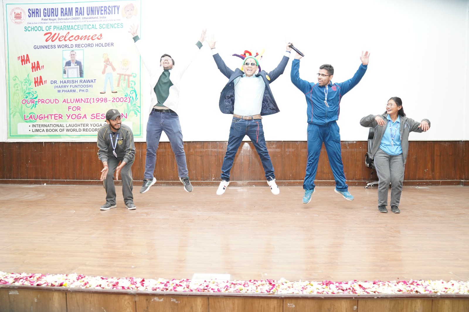 देहरादून। श्री गुरु राम राय विश्वविद्यालय में लाफ्टर योग सैशन का आयोजन किया गया। अन्तर्राष्ट्रीय लाफ्टर योग गुरु हरीश रावत के साथ फेकल्टी व छात्र-छात्राएं हंसहंस कर लोट पोट हो गए। एसजीआरआर विश्वविद्यालय के स्कूल ऑफ़ फार्मास्यूटिकल साइंसेज के द्वारा आयोजित लाफ्टर योग सैशन फैकल्टी सदस्यों व छात्र-छात्राओं ने जमकर लुत्फ उठाया। 2 घण्टे तक चले सैशन में सभी ने खूब ठहाके लगाए।