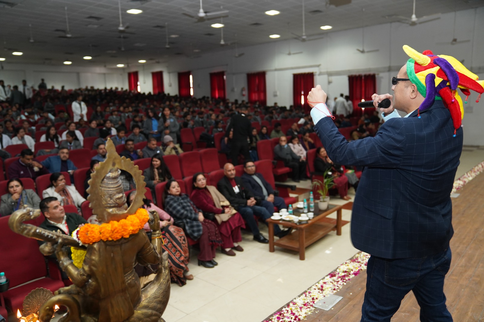 Home » Blog » श्री गुरु राम राय विश्वविद्यालय में 2 घण्टे तक हा हा हा…., अन्तर्राष्ट्रीय लाफ्टर योग गुरु हरीश रावत ने खूब हंसाया, वर्ल्ड रिकाॅर्ड होल्डर के साथ लाफ्टर योग सैशन में लोटपोट हुए फेकल्टी और छात्र-छात्राएं