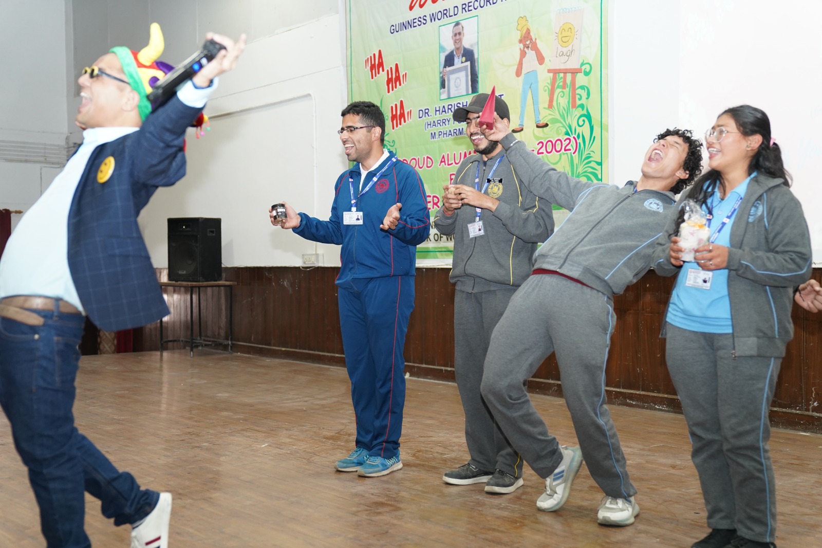 हास्य योग गुरू हरीश रावत ने हास्य योग के माध्यम से शारीरिक बीमारियों के समाधान, फेफडों तक ऑक्सीजन पहुंचाने सम्बन्धित योग बताकर सभी को स्वस्थ रहने का संदेश दिया। उन्होंने हास्य योग के कई माॅडल प्रस्तुत कर फेकल्टी व छात्र-छात्राओं को खूब हंसाया। कार्यक्रम को सफल बनाने में डाॅ लोकेश गम्भीर, डाॅ मनीष एवं शफी खुराना का विशेष सहयोग रहा।