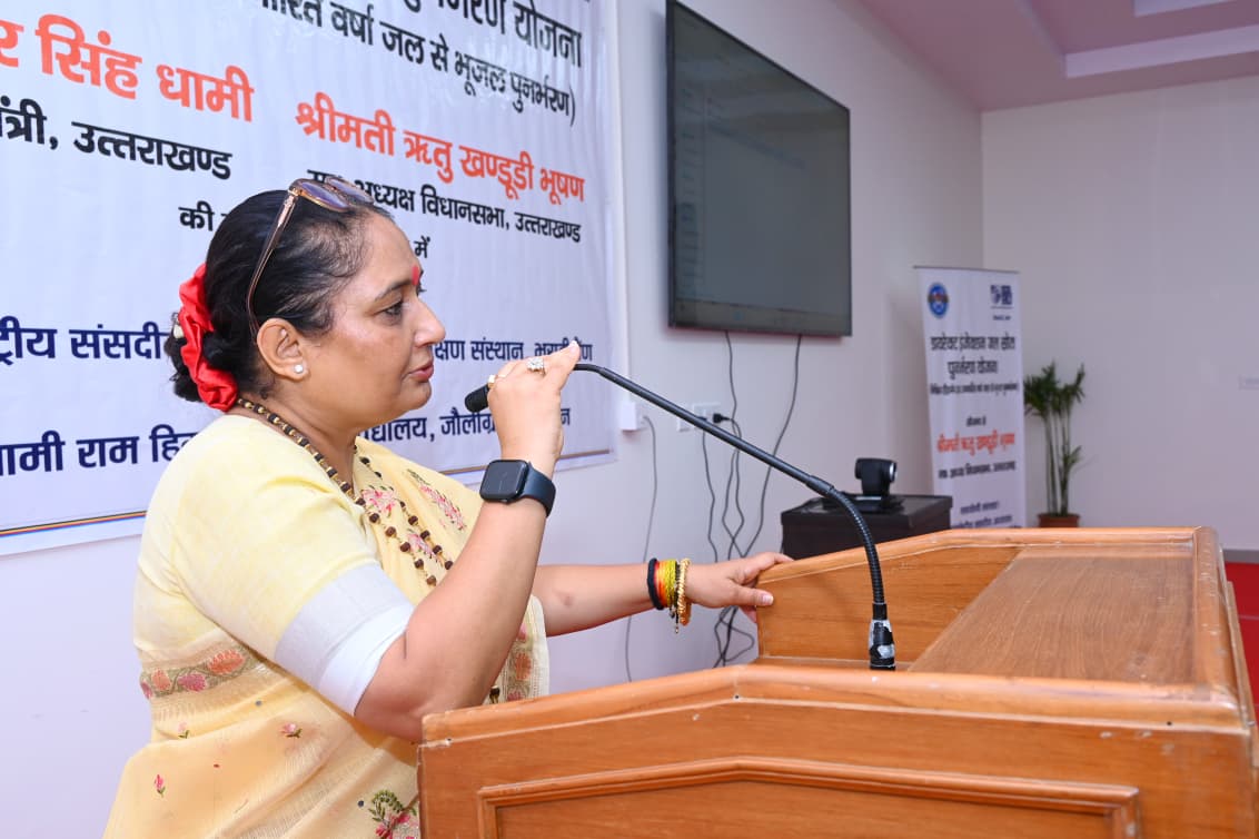 कार्यक्रम की शुरुआत में विधानसभा अध्यक्ष ऋतु खण्डूडी भूषण ने कहा कि जल संरक्षण केवल पर्यावरणीय आवश्यकता नहीं, बल्कि उत्तराखण्ड की भविष्य की जीवनरेखा है। विधानसभा अध्यक्ष ऋतु खण्डूडी भूषण ने इसे समय की आवश्यकता बताते हुए कहा कि “भूजल पुनर्भरण भविष्य की जल सुरक्षा का आधार बनेगा। यह योजना उत्तराखण्ड में सतत जल प्रबंधन और जल संरक्षण की दिशा में मील का पत्थर साबित होगी।