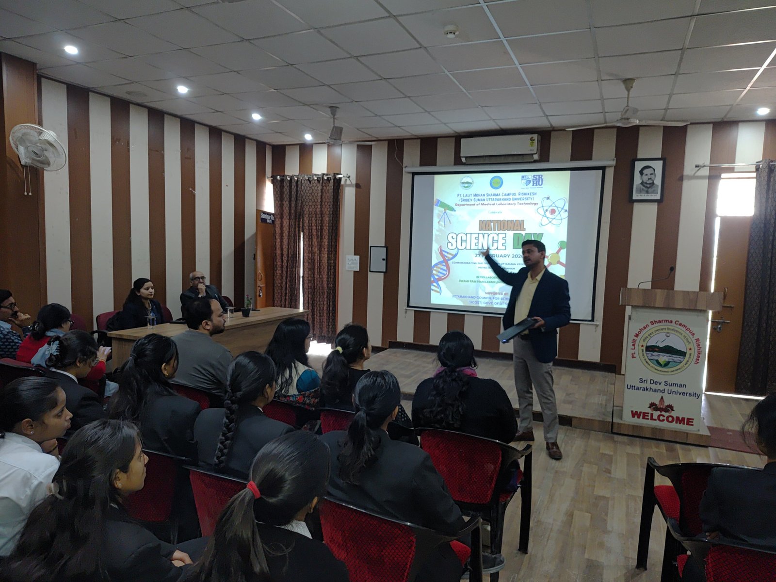ऋषिकेश : पंडित ललित मोहन शर्मा परिसर, ऋषिकेश के मेडिकल लैब टेक्नोलॉजी विभाग व स्वामी राम हिमालयन विश्वविद्यालय, जौलीग्रांट, देहरादून के संयुक्त तत्वावधान एवं उत्तराखंड राज्य विज्ञान एवं प्रौद्योगिकी परिषद (यूकॉस्ट) के सहयोग से राष्ट्रीय विज्ञान दिवस मनाया गया।