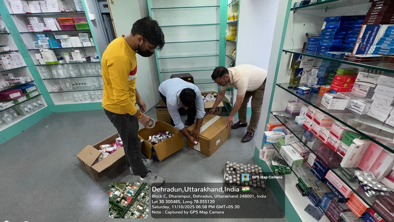 औषधि निरीक्षक (FDA) देहरादून मानेंद्र सिंह राणा के नेतृत्व में टीम ने पलटन बाजार, घंटाघर, राजकीय एस.पी.एस. चिकित्सालय देहरादून रोड, ऋषिकेश, जॉलीग्रांट, अजबपुर और नेहरू कॉलोनी क्षेत्र में स्थित विभिन्न मेडिकल स्टोरों और थोक विक्रेता फर्मों का औचक निरीक्षण किया। निरीक्षण के दौरान टीम ने पाया कि कुछ प्रतिष्ठानों में बच्चों को खांसी व सर्दी-जुकाम में दी जाने वाली प्रतिबंधित दवाएं (सिरप) अलग करके भंडारित की गई थीं। टीम ने मौके पर ही इन दवाओं को सील कर दिया और संबंधित विक्रेताओं को अग्रिम आदेशों तक विक्रय बंद करने के सख्त निर्देश दिए।
