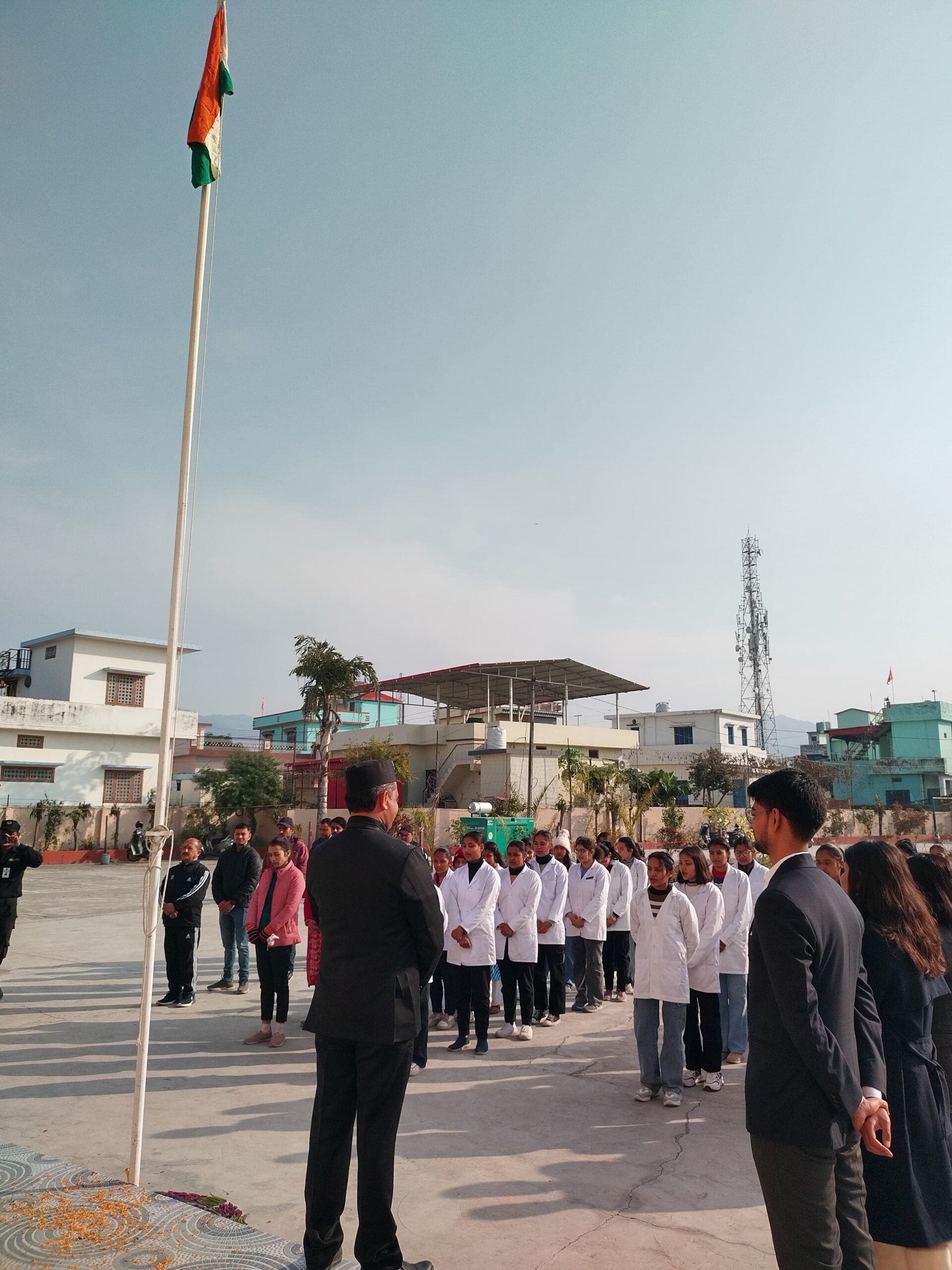 कोटद्वार : 75वें गणतंत्र दिवस के मौके पर श्री गुरु राम राय पैरामेडिकल कॉलेज पदमपुर कोटद्वार में हर्षोउल्लास के साथ मनाया गया। कॉलेज के प्राचार्य डॉ. गिरीश उनियाल ने ध्वजारोहण किया साथ ही उन्होने छात्रो को दिये अपने सम्बोधन में देश के उन क्रातिकारी वीरसपूतो को याद किया जिन्होने इस स्वर्णीम दिवस के लिए अपने प्राणों की आहूति दी। इस मौके पर कॉलेज में विभिन्न खेल प्रतियोगिता का आयोजन किया गया जिसमें कबड्डी, रस्सा-कस्सी, आदि खेलों का आयोजन हुआ। रस्साकस्सी में छात्र व छात्राओं दोनों वर्गो में रेडियोलॉजी डिमार्टमेंट के छात्र-छात्राऐं विजेता रहे इसके साथ ही कब्बड़ी के छात्र वर्ग में फिजियोथेरेपी एवं छात्राओं में मेडिकल माइक्रोबॉयलॉजी की छात्राए विजेता बनी।