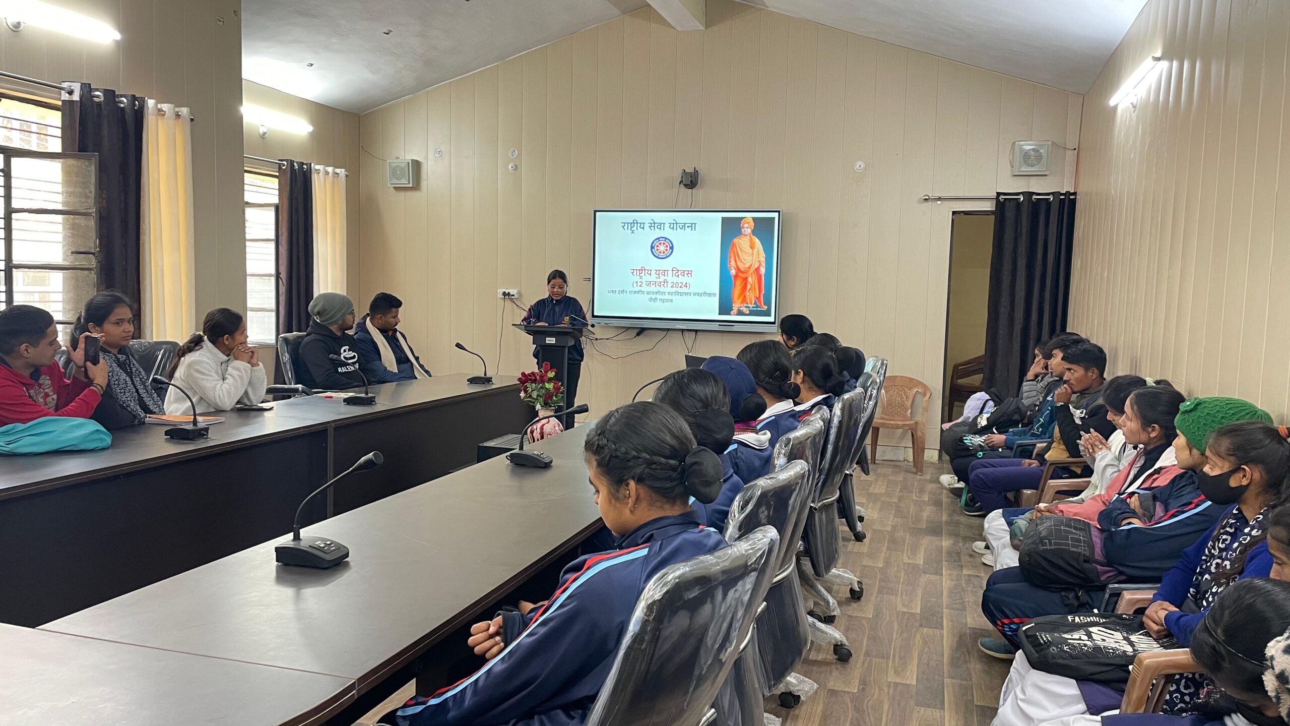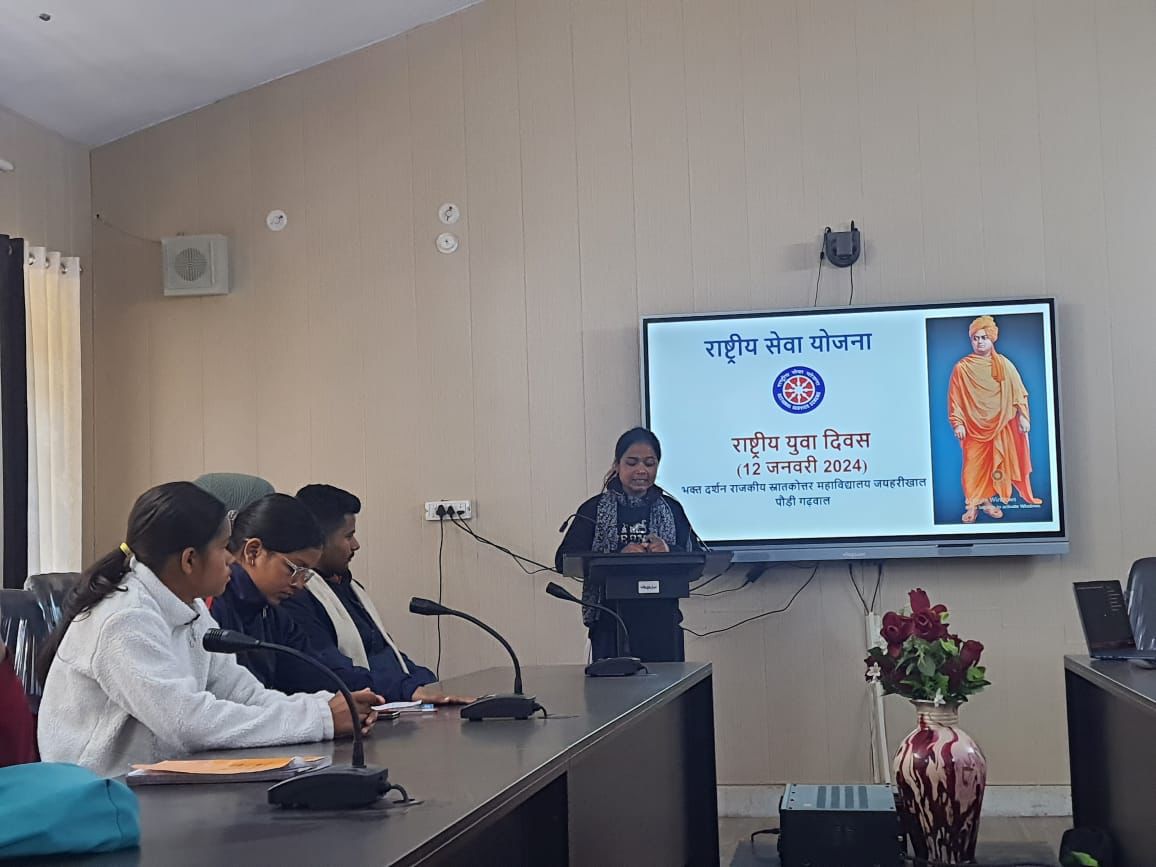 लैंसडाउन : भक्त दर्शन राजकीय स्नातकोत्तर महाविद्यालय जयहरीखाल की राष्ट्रीय सेवा योजना इकाई के तत्वावधान में राष्ट्रीय युवा दिवस का आयोजन किया गया । इस अवसर पर विभिन्न कार्यक्रमों यथा पोस्टर, भाषण एवं निबन्ध प्रतियोगताओं का आयोजन किया गया। पोस्टर प्रतियोगिता (स्वामी विवेकानन्द के कथन) में कुमकुम रावत ने प्रथम स्थान तथा मोहित बिष्ट ने द्वितीय स्थान प्राप्त किया । भाषण प्रतियोगिता (युवा पीढ़ी के लिए स्वामी विवेकानन्द की प्रासंगिकता एवं प्रेरणा) में तनिषा रावत प्रथम, कुमकुम द्वितीय, मानसी, नवनीत संयुक्त रूप से तीसरे स्थान पर रहे ।