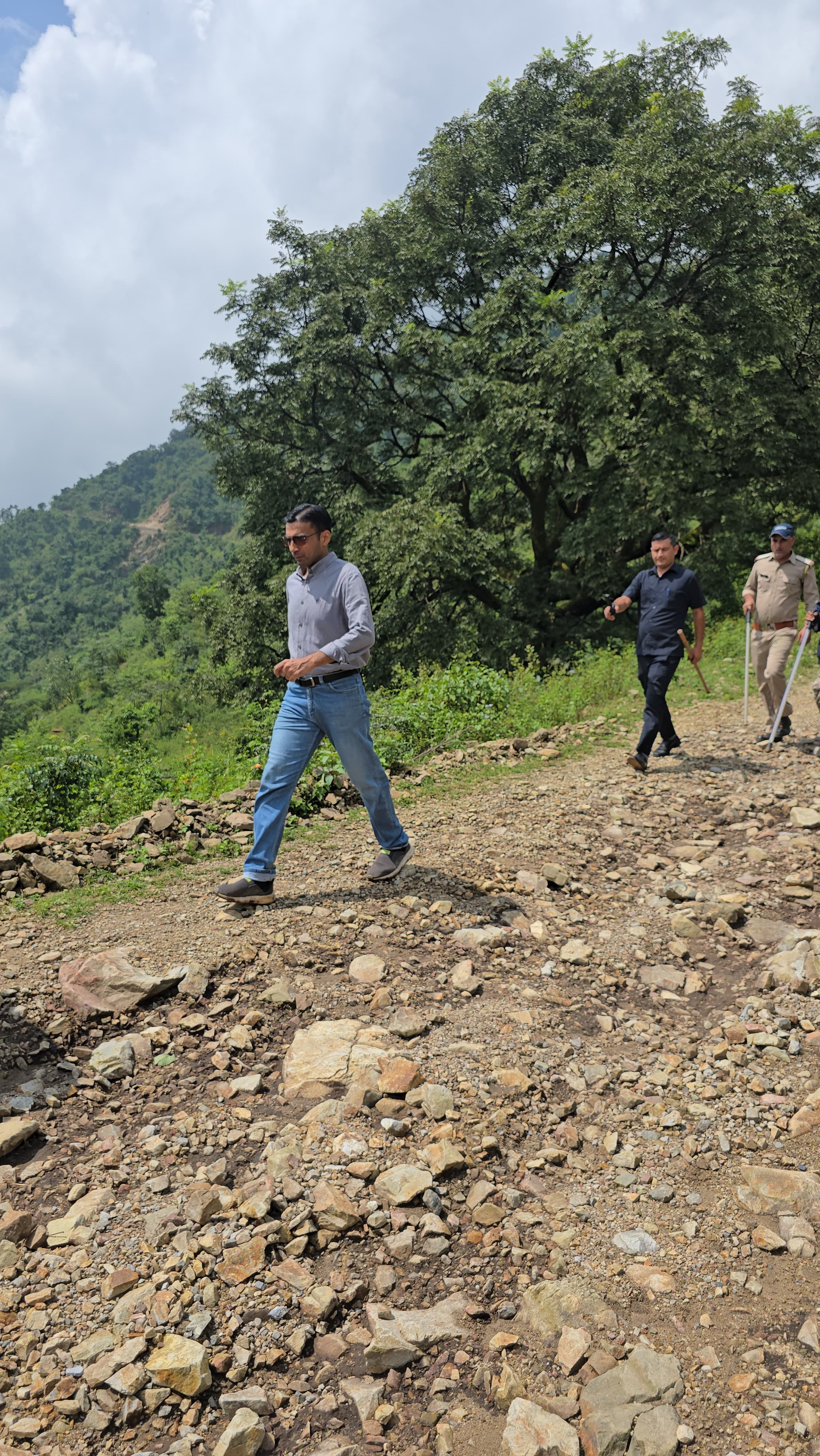- जिला मुख्यालय से लगभग 40 किमी छमरौली तक दुर्गम रास्तों तथा छमरोली से लगभग 12 किमी पैदल रूट से प्रशासनिक अमले संग फुलेत पहुंचे डीएम