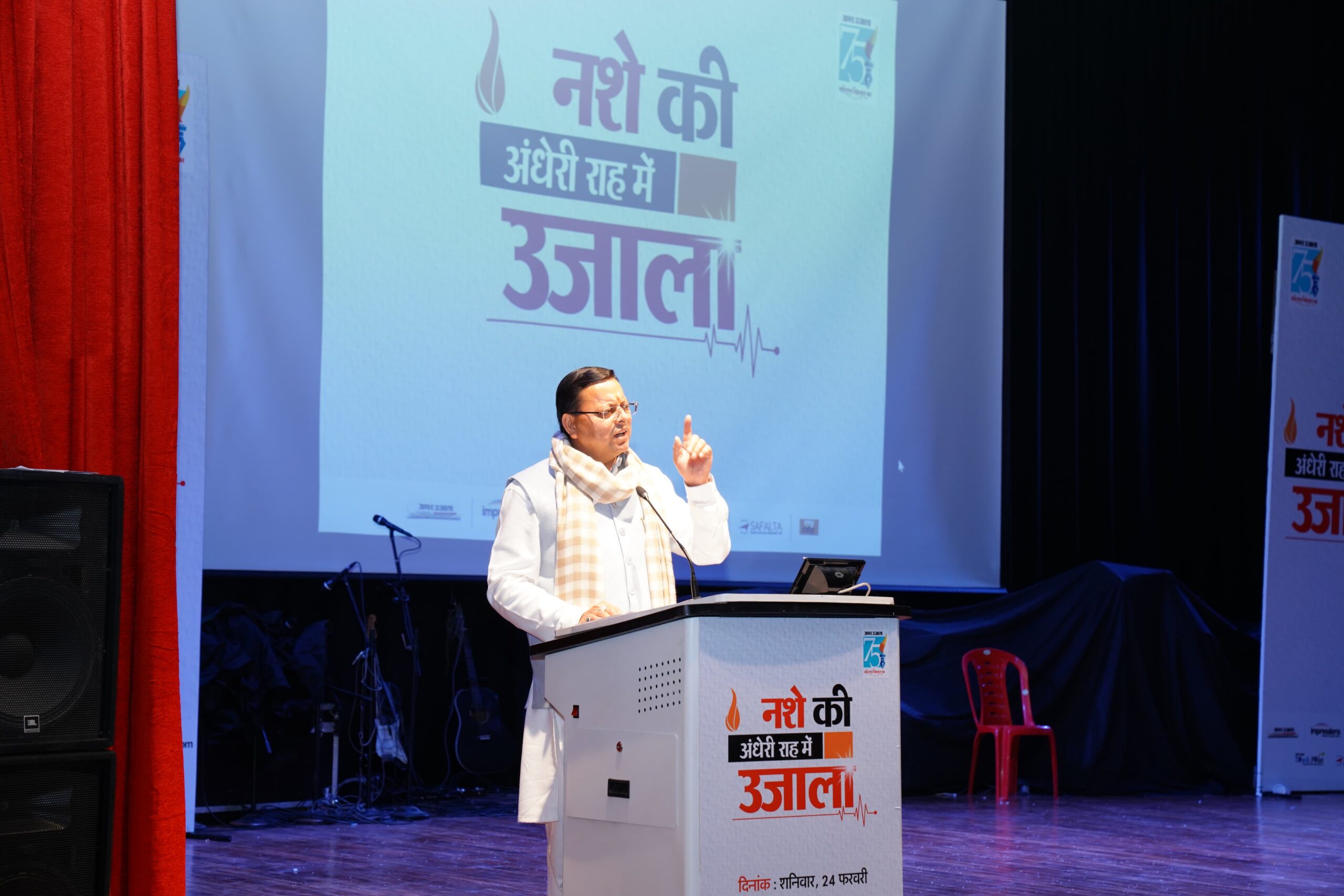 शनिवार को हिमालयन सांस्कृतिक केंद्र में अमर उजाला द्वारा आयोजित ‘‘नशे की अंधेरी राह में उजाला’’ कार्यक्रम को संबोधित करते हुए मुख्यमंत्री ने नशे के विरूद्ध अभियान चलाने के लिये किये जा रहे प्रयासों की सराहना करते हुए कहा कि नशे की प्रवृति को रोकने एवं नशाग्रस्त व्यक्तियों को मुख्यधारा से जोड़ने के लिए राज्य सरकार द्वारा समाज के विभिन्न वर्गों और विशेषकर युवाओं में नशे के दुष्परिणामों को लेकर अभियान चलाया जा रहा है। नशे की रोकथाम एवं इसके सम्बन्ध में जानकारी तथा जनता को किसी भी प्रकार की सहायता हेतु हेल्पलाइन नम्बर भी जारी किए गए हैं। मुख्यमंत्री ने आशा व्यक्त की कि सभी के सहयोग और संस्थाओं द्वारा किये जा रहे अथक प्रयासों से, हम समय से पहले ही ड्रग्स फ्री देवभूमि का विकल्प रहित संकल्प अवश्य प्राप्त कर लेंगे।