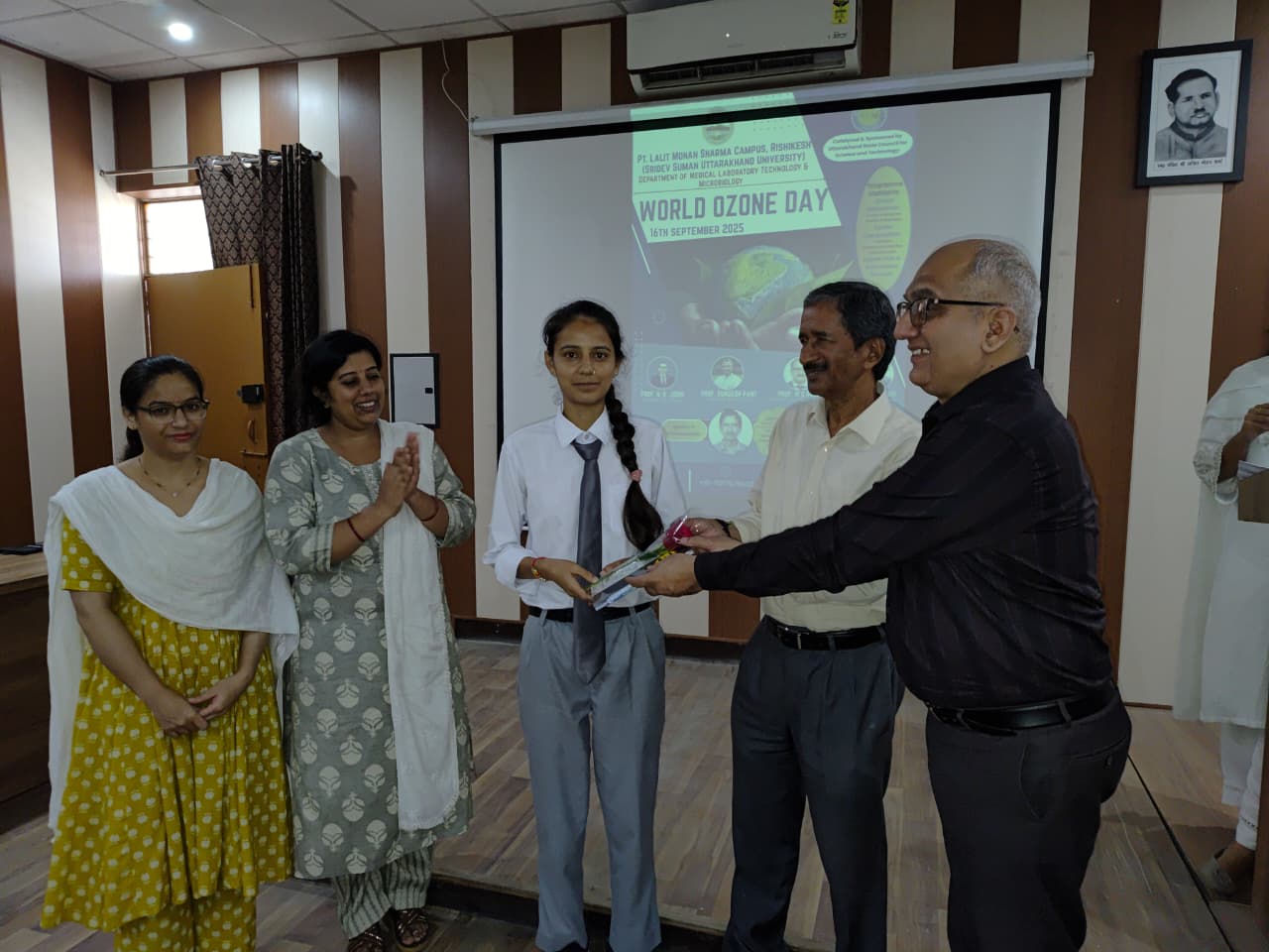 ऋषिकेश : उत्तराखंड राज्य विज्ञान एवं प्रोधौगिकी परिषद (यूकास्ट) द्वारा व पंडित ललित मोहन शर्मा परिसर ऋषिकेश के मेडिकल लैब टेक्नोलॉजी/ माइक्रोबायोलॉजी विभाग के तत्वावधान में विश्व ओजोन दिवस मनाया गया । जिसमें छात्र-छात्राओं के लिए वाद-विवाद व पोस्टर प्रतियोगिता का आयोजन किया गया जिसमें विभाग व विज्ञान संकाय के छात्र-छात्राओं ने प्रतिभाग किया।