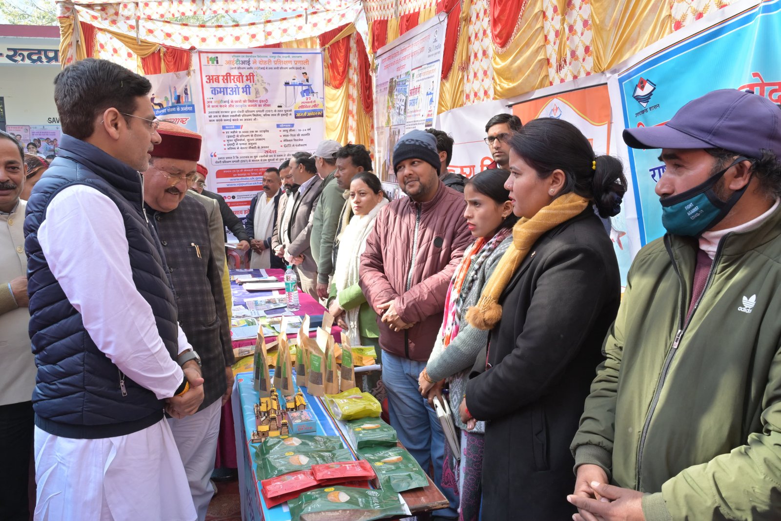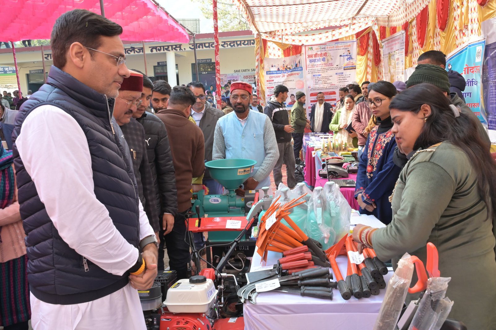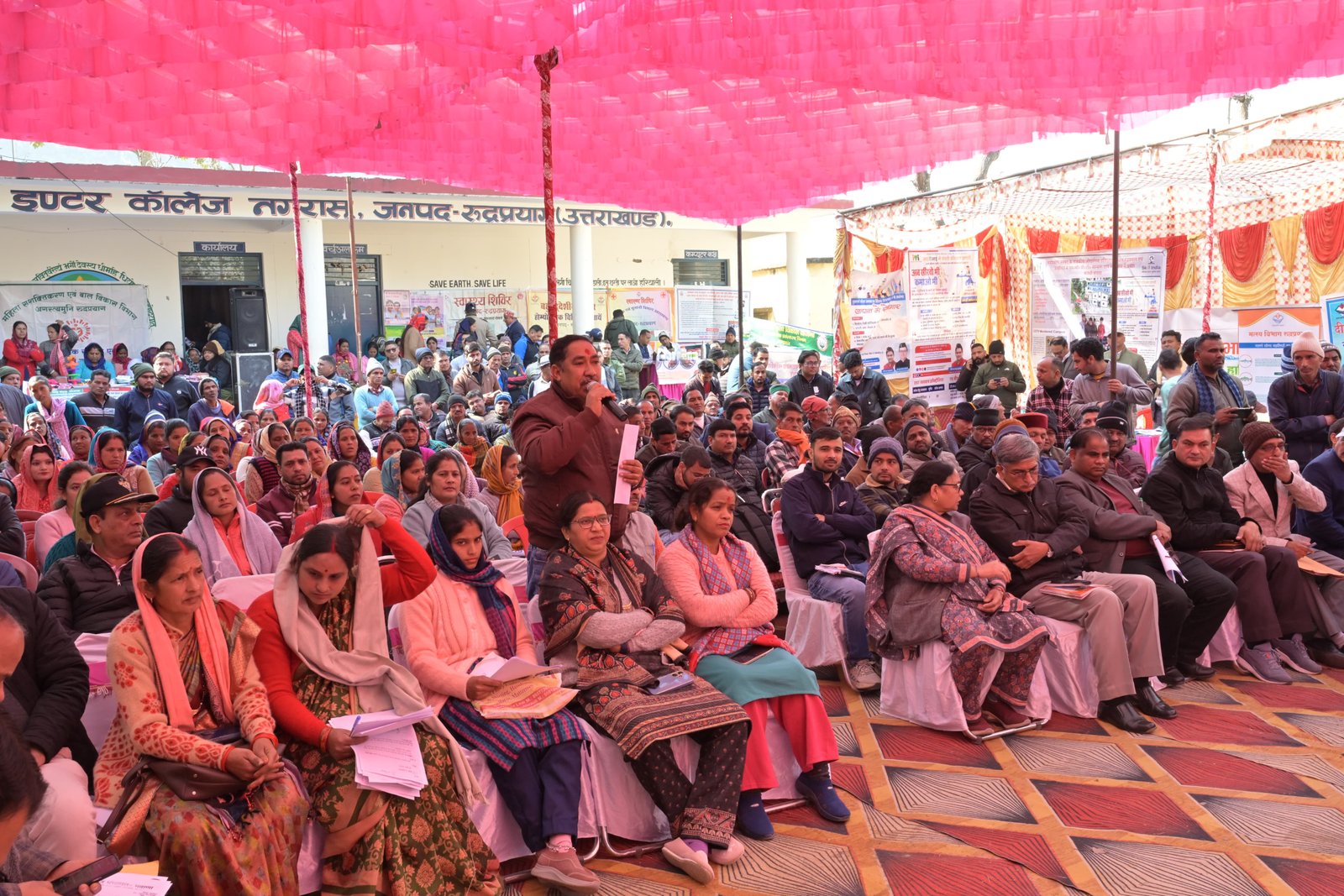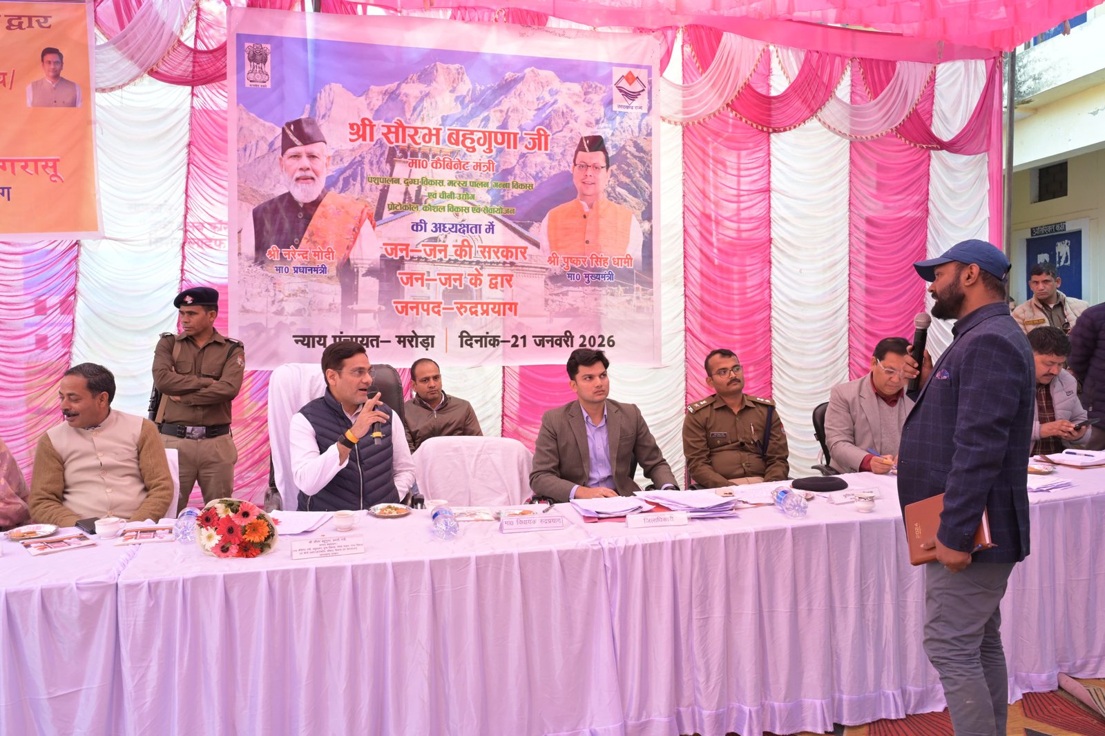 मंत्री (प्रभारी मंत्री, जनपद रुद्रप्रयाग) पशुपालन, दुग्ध विकास, मत्स्य पालन, गन्ना विकास एवं चीनी उद्योग, प्रोटोकॉल, कौशल विकास एवं सेवायोजन विभाग, उत्तराखण्ड सरकार सौरभ बहुगुणा की अध्यक्षता में न्याय पंचायत मरोड़ा अंतर्गत राजकीय इंटर कॉलेज नगरासू (रुद्रप्रयाग) में बहुउद्देशीय शिविर का आयोजन किया गया। शिविर के माध्यम से विभिन्न विभागों द्वारा विभागीय स्टॉल स्थापित कर पात्र लाभार्थियों को केन्द्र एवं राज्य सरकार की योजनाओं की जानकारी दी गई तथा मौके पर ही आवेदन, शिकायत एवं समस्याओं का निस्तारण किया गया।