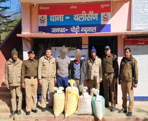 कोटद्वार। वरिष्ठ पुलिस अधीक्षक पौड़ी ने जनपद में मादक पदार्थों एवं ड्रग्स की बढ़ती प्रवृति पर प्रभावी अंकुश लगाये जाने के साथ ही अवैध तरीके से नशीले पदार्थों का क्रय-विक्रय करने वालों के विरूद्ध अभियान चलाए जाने के निर्देश दिए हैं । जिसके क्रम में थानाध्यक्ष सुनील पंवार के नेतृत्व में थाना थलीसैण पुलिस टीम ने चैकिंग के दौरान नशा सप्लायर ग्राम तऊ थाना थलीसैंण निवासी जयपाल सिंह भण्डारी पुत्र जीतसिंह एवं बालम सिंह पुत्र स्व. मूर्ति सिंह को सौंपखाल तिराहा, रसिया महादेव के पास से 53.975 गांजे के साथ गिरफ्तार किया गया। दोनों अभियुक्तों के विरुद्ध थाना थलीसैण में एनडीपीएस एक्ट के तहत मुकदमा दर्ज किया गया है। बरामद गांजे की कीमत दो लाख रुपए बताई जा रही है।