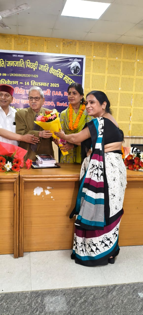 कोटद्वार : एससी, एसटी, ओबीसी वैचारिक महासभा उत्तराखंड का द्विवार्षिक अधिवेशन सम्पन्न हुआ, इस अवसर पर महासभा की नवीन कार्यकारणी चुनी हुई। तपोवन रोड रायपुर स्थित ब्लॉक सभागार में देश के संविधान निर्माता, भारत रत्न बाबा साहब डॉक्टर भीमराव अंबेडकर एवं मुंशी हरि प्रसाद टम्टा के चित्र पर पुष्पांजलि अर्पित कर एवं दीपप्रज्वलित कर समारोह का शुभारंभ हुआ। कार्यक्रम में प्रदेश के विभिन्न जनपदों से एससी, एसटी एवं ओबीसी समाज के लोग कार्यक्रम में शामिल हुए ।