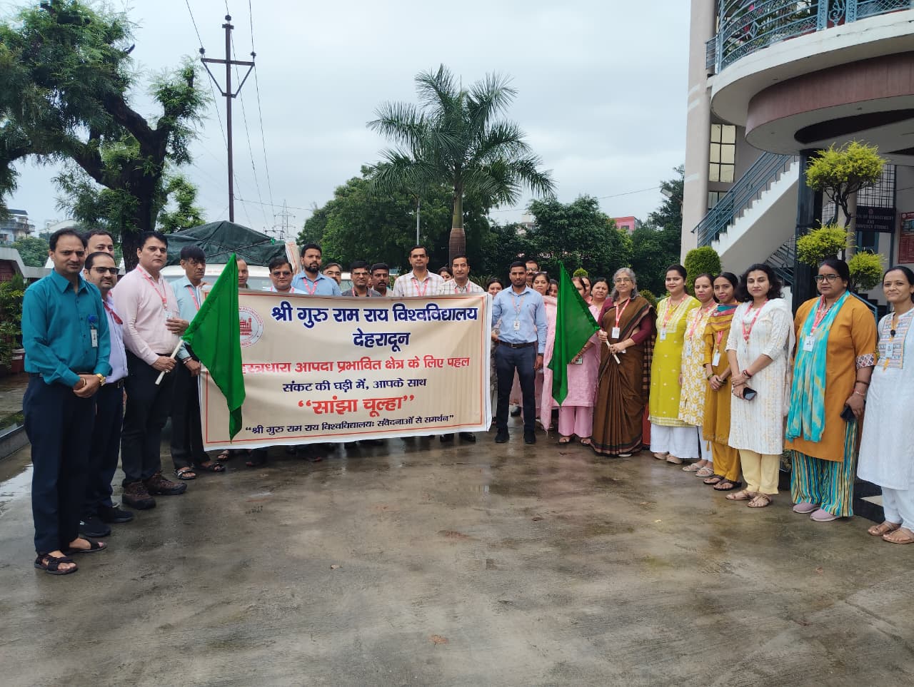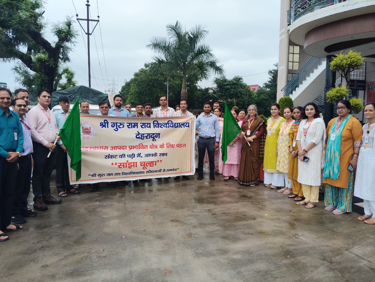 श्री गुरु राम राय विश्वविद्यालय की कुलपति प्रोफेसर (डॉ.) कुमुद सकलानी ने गुरुवार को खाद्य सामग्री से लदे वाहनों को हरी झंडी दिखाकर राहत कार्यों की औपचारिक शुरुआत की। राहत सामग्री में अनाज, दवाइयाँ और दैनिक जीवन की आवश्यक वस्तुएँ शामिल थीं।