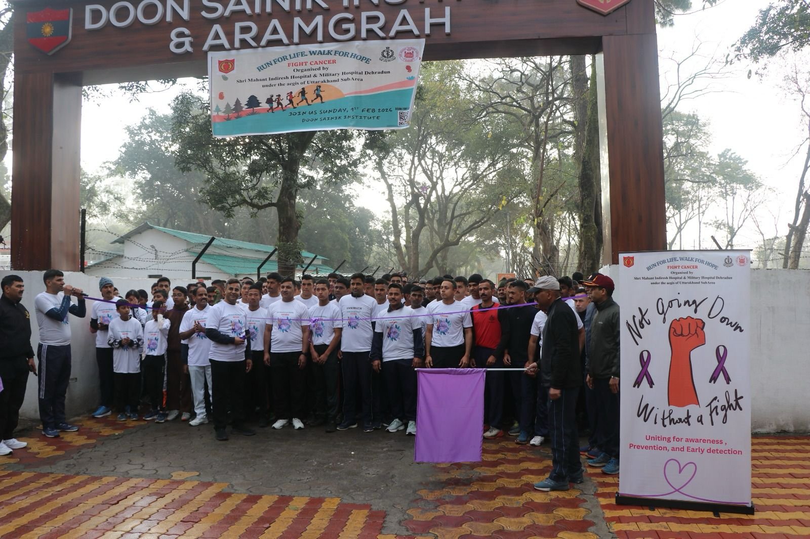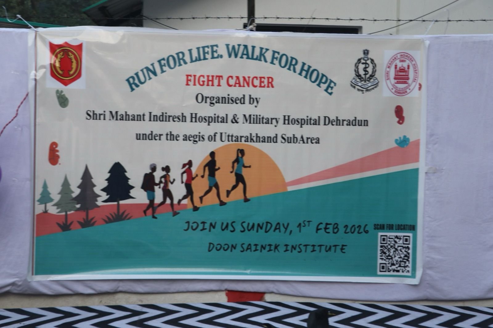 देहरादून : विश्व कैंसर दिवस ( 4 फरवरी ) के उपलक्ष्य में आयोजित गतिविधियों के अंतर्गत रविवार, 1 फरवरी 2026 को उत्तराखंड सब एरिया के तत्वावधान में श्री महंत इंदिरेश अस्पताल के ऑन्कोलॉजी विभाग तथा मिलिट्री हॉस्पिटल, देहरादून द्वारा संयुक्त रूप से कैंसर जागरूकता हेतु वॉकाथॉन एवं रन का आयोजन किया गया। कार्यक्रम का औपचारिक उद्घाटन रविवार को किया गया तथा रन को ब्रिगेडियर प्रफुल मोहन, कमांडेंट, मिलिट्री हॉस्पिटल, एवं डॉ. पंकज गर्ग, विभागाध्यक्ष, ऑन्कोलॉजी विभाग, श्री महंत इंदिरेश अस्पताल द्वारा हरी झंडी दिखाकर रवाना किया गया।