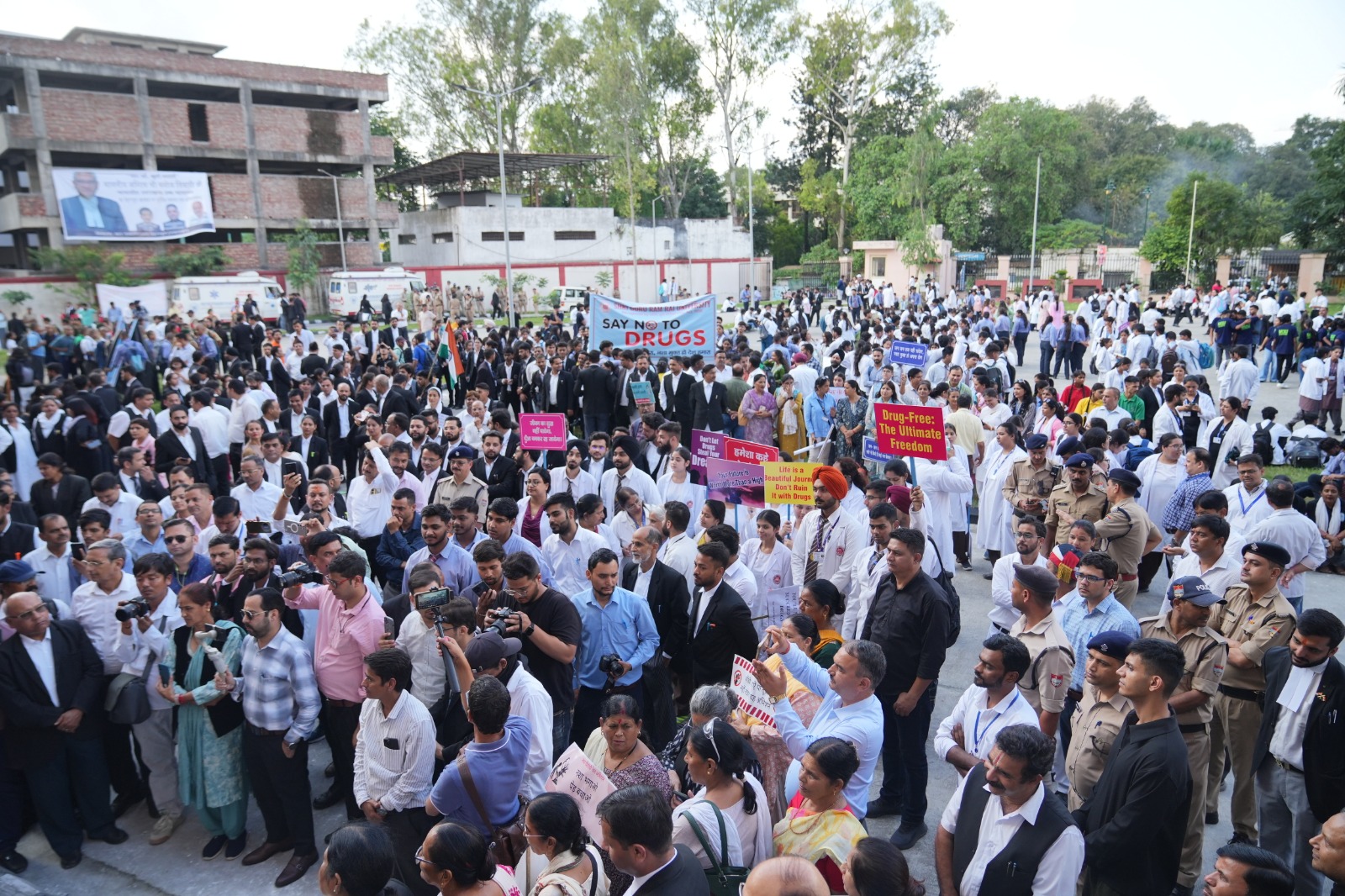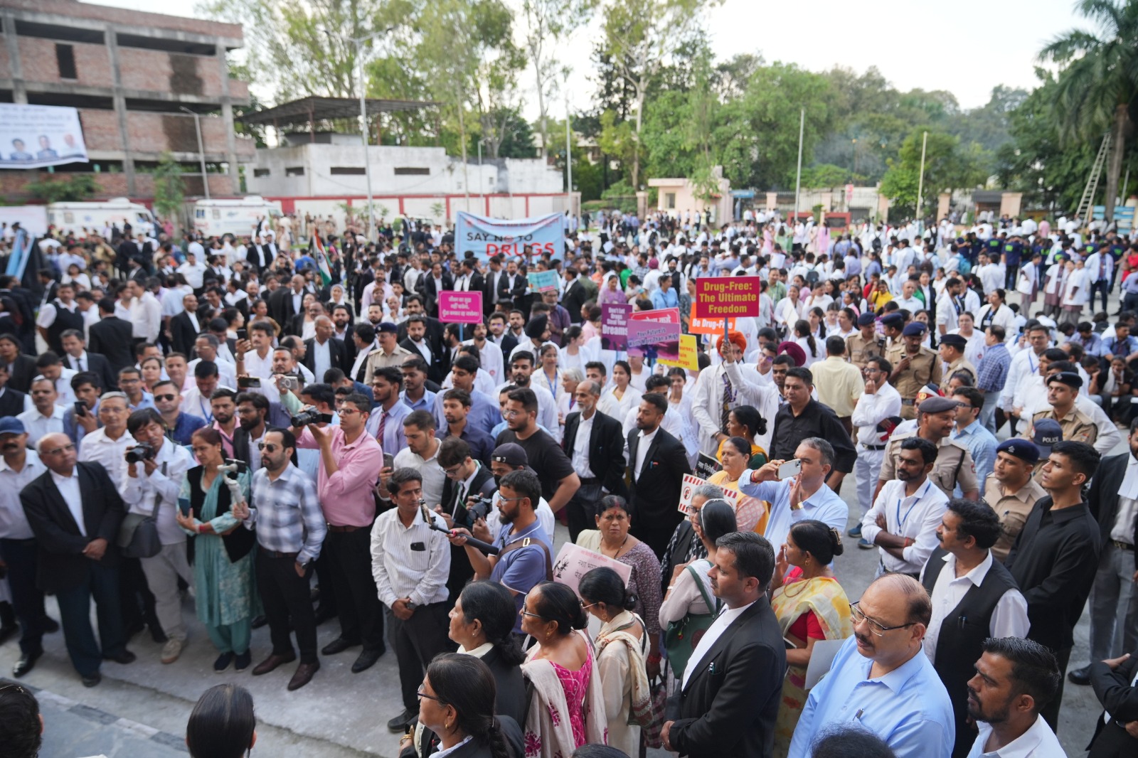बार एसोएिशन देहरादून की ओर से आहुत इस विशाल रैली में श्री गुरु राम राय विश्वविद्यालय से करीब दो हजार छात्र-छात्राओं और फैकल्टी सदस्यों ने भाग लेकर समाज को नशा छोड़ने का संदेश दिया। रैली में देहरादून बार एसोसिएशन, वकीलों, विभिन्न सामाजिक संगठनों एवं दूनवासियों ने प्रतिभाग किया। जिला न्यायालय परिसर से देहरादून में उत्तराखंड हाईकोर्ट नैनीताल के माननीय न्यायाधीश जस्टिस मनोज तिवारी एवं बार एसोसिएशन देहरादून के अध्यक्ष मनमोहन कंडवाल ने हरी झंडी दिखाकर रवाना किया। जिला न्यायालय परिसर से प्रारम्भ होकर गांधी पार्क पर जाकर रैली सम्पन्न हुई ।