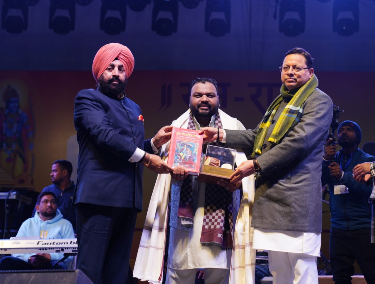 देहरादून : राज्यपाल लेफ्टिनेंट जनरल गुरमीत सिंह (सेनि) एवं मुख्यमंत्री पुष्कर सिंह धामी ने बुधवार को सायं रेसकोर्स बन्नू स्कूल में आयोजित राम राग एक संध्या राम के नाम भजन संध्या में शामिल हुए। उन्होंने पद्म श्री कैलाश खेर और कन्हैया मित्तल को सम्मानित करते हुए कहा कि कैलाश खैर और कन्हैया मित्तल अपने भजनों के माध्यम से दुनिया में अपना नाम रोशन कर रहे हैं। उनके भजन भाव विभोर करने के साथ दिल को छू जाने का कार्य करते हैं। दोनों गायकों के भजनों से पूरा वातावरण राममय होने के साथ ही बड़ी संख्या में उपस्थित लोग पूरी तन्मयता से श्री राम की भक्ति में सराबोर नजर आये।