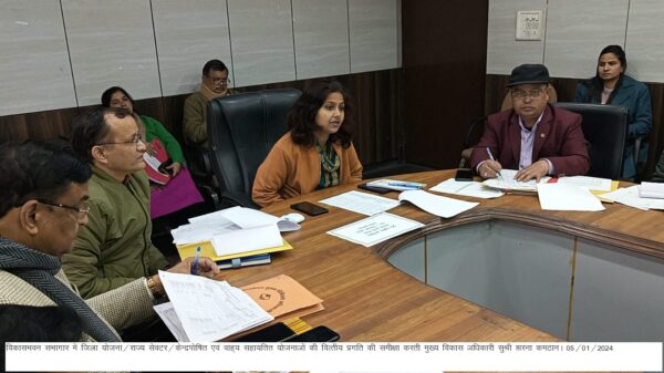 देहरादून : मुख्य विकास अधिकारी झरना कमठान की अध्यक्षता में विकासनभवन सभागार में जिला योजना/राज्य सेक्टर/केन्द्रपोषित एवं वाह्य सहायतित योजनाओं की वित्तीय प्रगति की समीक्षा की गई। बीस सूत्रीय कार्यक्रम में माह अपै्रल से माह अक्टूबर 2023 तक 91.92 प्रतिशत् प्रगति के साथ राज्य में  प्रथम स्थान पर रहने पर मुख्य विकास अधिकारी ने सम्बन्धित विभागों की प्रशंसा करते हुए प्रथम स्थान पर बने रहने की दिशा में कार्य करने के निर्देश दिए। तथा 30 सूत्रीय कार्यक्रम में राज्य में  2 स्थान पर  रहने पर प्रशंसा करते हुए प्रथम स्थान जाने हेतु प्रयास करने के निर्देश दिए। मुख्य विकास अधिकारी ने योजनाओं शत् प्रतिशत् रहने वाले विभागों की प्रशंसा करते हुए अन्य विभागों को भी प्रगति को शतप्रतिशत बढाने के निर्देश दिए।
