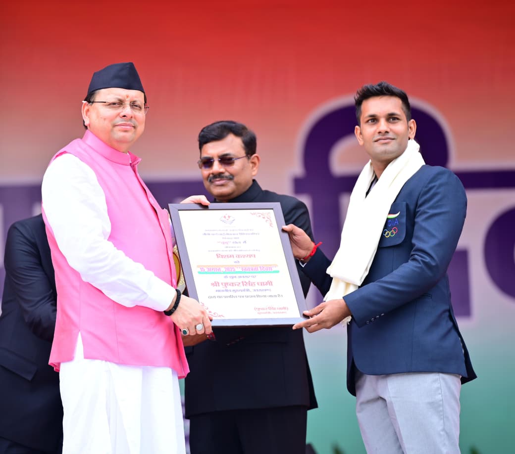 मुख्यमंत्री ने कहा कि राज्य सरकार देवभूमि को खेलभूमि के रूप में स्थापित करने के लिए निरंतर प्रयासरत है। राज्य में ग्रीन गेम्स की थीम पर आयोजित राष्ट्रीय खेलों में उत्तराखण्ड ने 103 पदक जीतकर 7वां स्थान प्राप्त कर एक नया इतिहास रचा। खेलों को बढ़ावा देने के लिए सरकार राज्य में स्पोर्ट्स लीगेसी प्लान भी लागू करने जा रही है, जिसके अंतर्गत प्रदेश के 8 शहरों में 23 खेल अकादमियां स्थापित की जाएंगी। प्रदेश को योग एवं अध्यात्म की वैश्विक राजधानी बनाने के उद्देश्य से प्रदेश में नई योग नीति लागू की है। प्रदेश में आयुर्वेदिक एवं प्राकृतिक चिकित्सा, योग और आध्यात्मिक पर्यटन को बढ़ावा देने के लिए गढ़वाल और कुमाऊं मंडलों में एक-एक ’’स्पिरिचुअल इकोनॉमिक ज़ोन’’ की स्थापना की जा रही है। “हाउस ऑफ हिमालयाज ’’ ब्रांड राज्य के सभी आर्गेनिक उत्पादों को एक छत के नीचे लाने में कारगर सिद्ध हुआ है। ’’होम स्टे योजना’’ के अंतर्गत प्रदेश के युवाओं ने स्वरोजगार के क्षेत्र में नए आयाम स्थापित किए हैं। किसानों को तीन लाख रूपए तक का ऋण बिना ब्याज के उपलब्ध कराने के साथ ही कृषि उपकरण खरीदेने के लिए “फार्म मशीनरी बैंक“ योजना से 80 प्रतिशत तक की सब्सिडी दी जा रही है। किसानों की आय बढ़ाने के लिए पॉलीहाउस के निर्माण के लिए 200 करोड़ रूपए की राशि का प्रावधान भी किया गया है। 1200 करोड़ रुपये की लागत से नई सेब नीति, कीवी नीति, ’स्टेट मिलेट मिशन’ और ’ड्रैगन फ्रूट नीति’ जैसी कई महत्वपूर्ण योजनाओं को राज्य में लागू किया गया है।