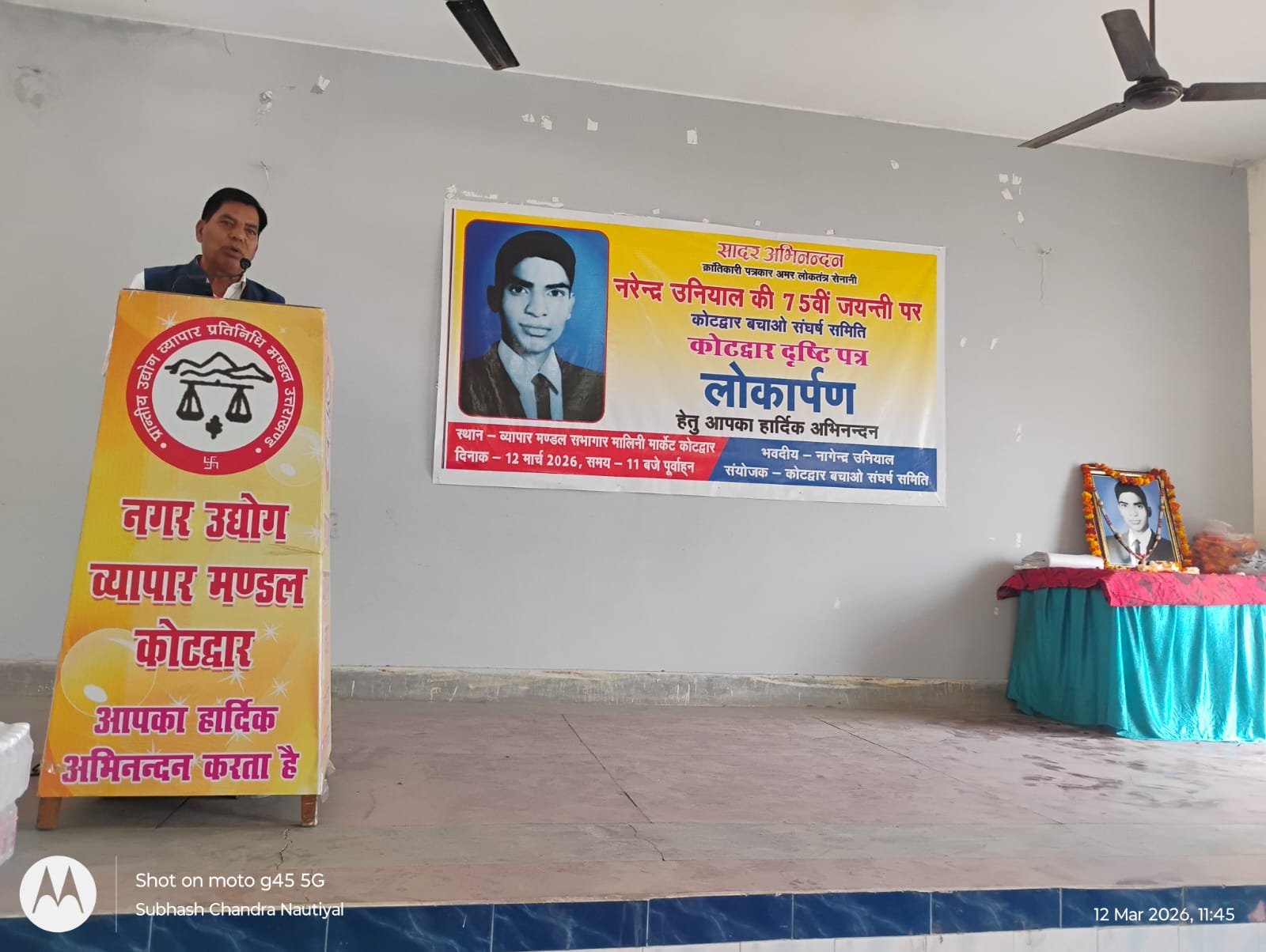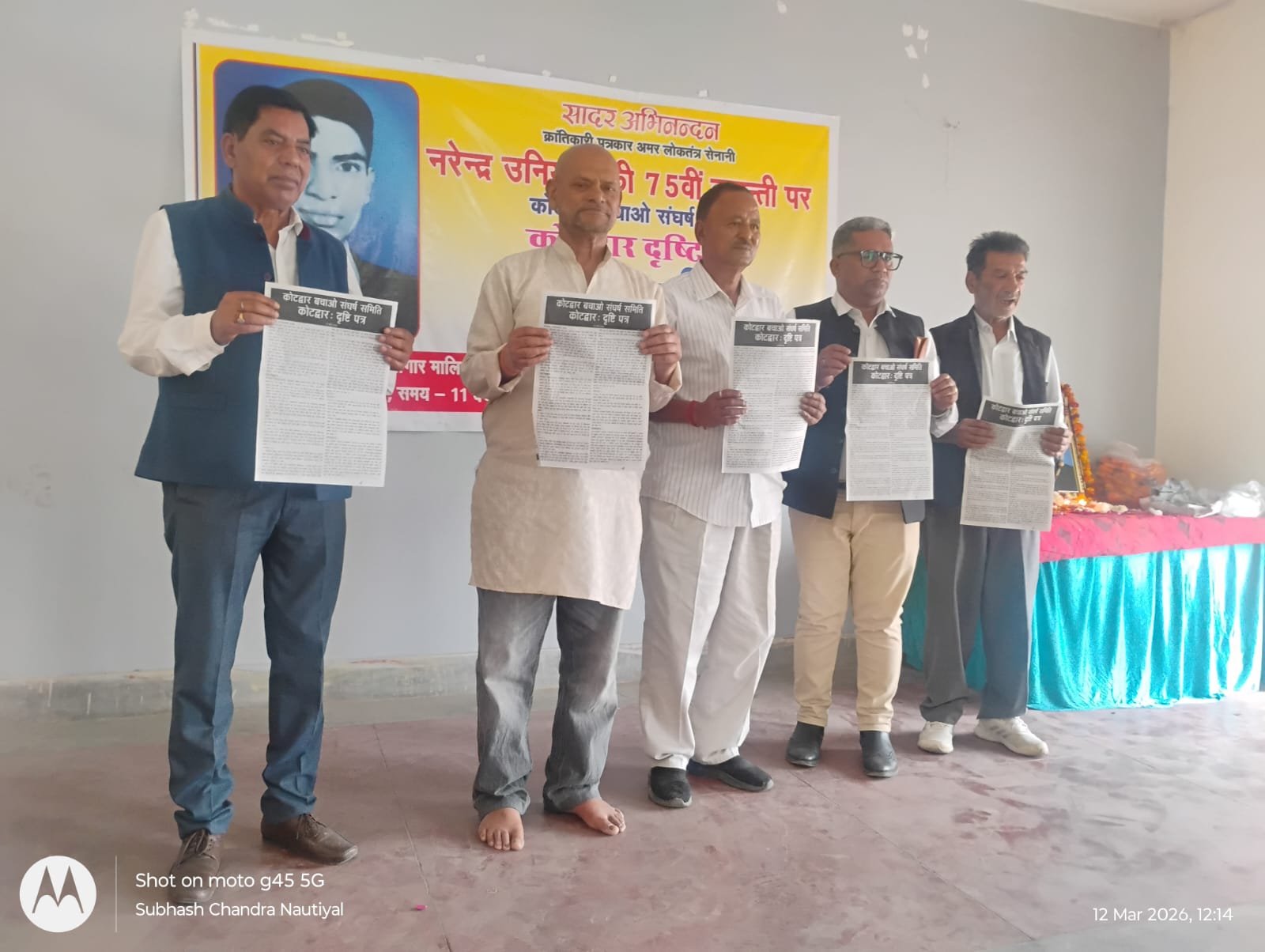 कोटद्वार : क्रान्तिकारी पत्रकार अमर लोकतंत्र सेनानी नरेन्द्र उनियाल की 75 वीं जयंती के अवसर पर कोटद्वार बचाओ संघर्ष समिति के बैनर तले एक कार्यक्रम आयोजित किया गया। कार्यक्रम में नरेन्द्र उनियाल के कृतित्व एवं व्यक्तित्व को याद करते हुए उन्हें सादर श्रद्धांजलि दी गयी।