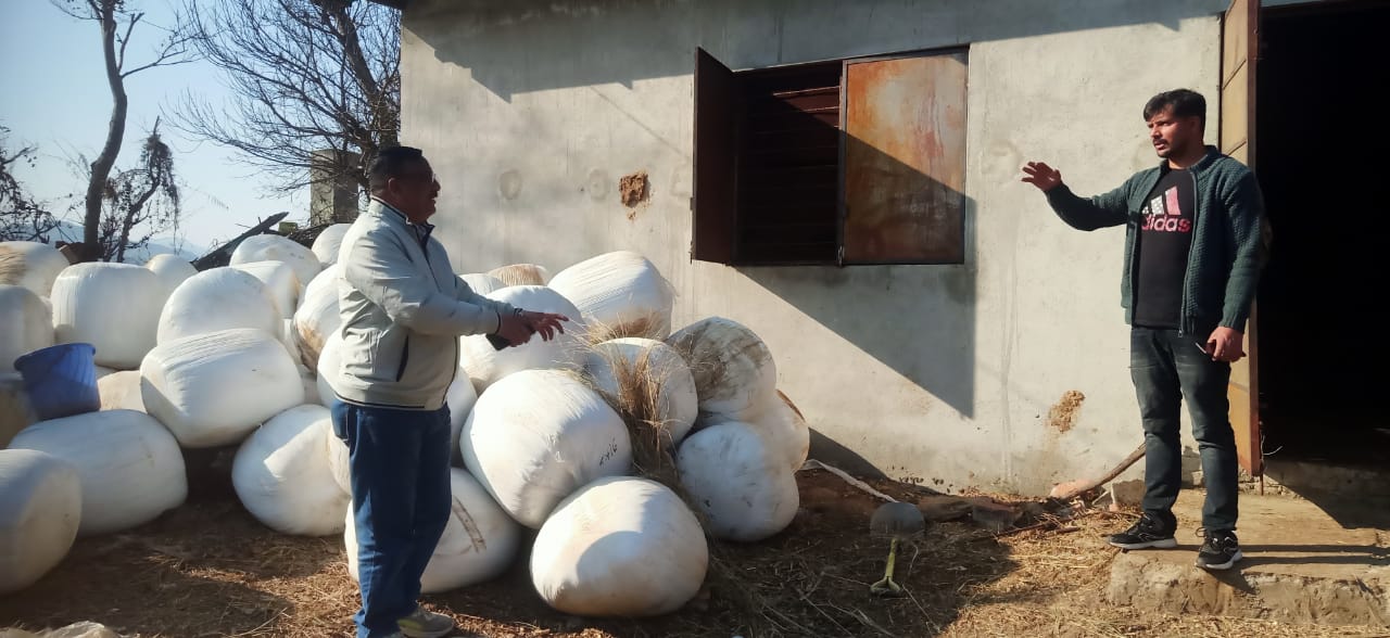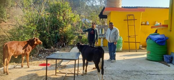 अल्मोड़ा/देहरादून : गुरुवार को कुमाऊँ मंडल के उप निबंधक सहकारी समितियाँ हरीश चंद्र खण्डूड़ी ने कोसी एम-पैक्स के ग्राम रालाकोट में नवजोत जोशी के पशुबाड़े का निरीक्षण किया गया तो पाया गया कि नवजोत जोशी द्वारा पशुपालन के क्षेत्र में सराहनीय कार्य किया जा रहा है। एम-पैक्स कोसी उत्तराखंड सरकार की मुख्यमंत्री घसियारी कल्याण योजना के अंतर्गत नवजोत जोशी एवं अन्य पशुपालकों को ₹2.25 पैसे प्रति किलोग्राम की दर से पशु आहार उपलब्ध कराने में महत्वपूर्ण भूमिका निभा रही है। नवजोत जोशी ने निरीक्षकों को बताया कि इस अनुदानित पशु आहार के उपयोग से उनकी गायों का दूध उत्पादन प्रतिदिन दो से ढाई किलो बढ़ जाता है।