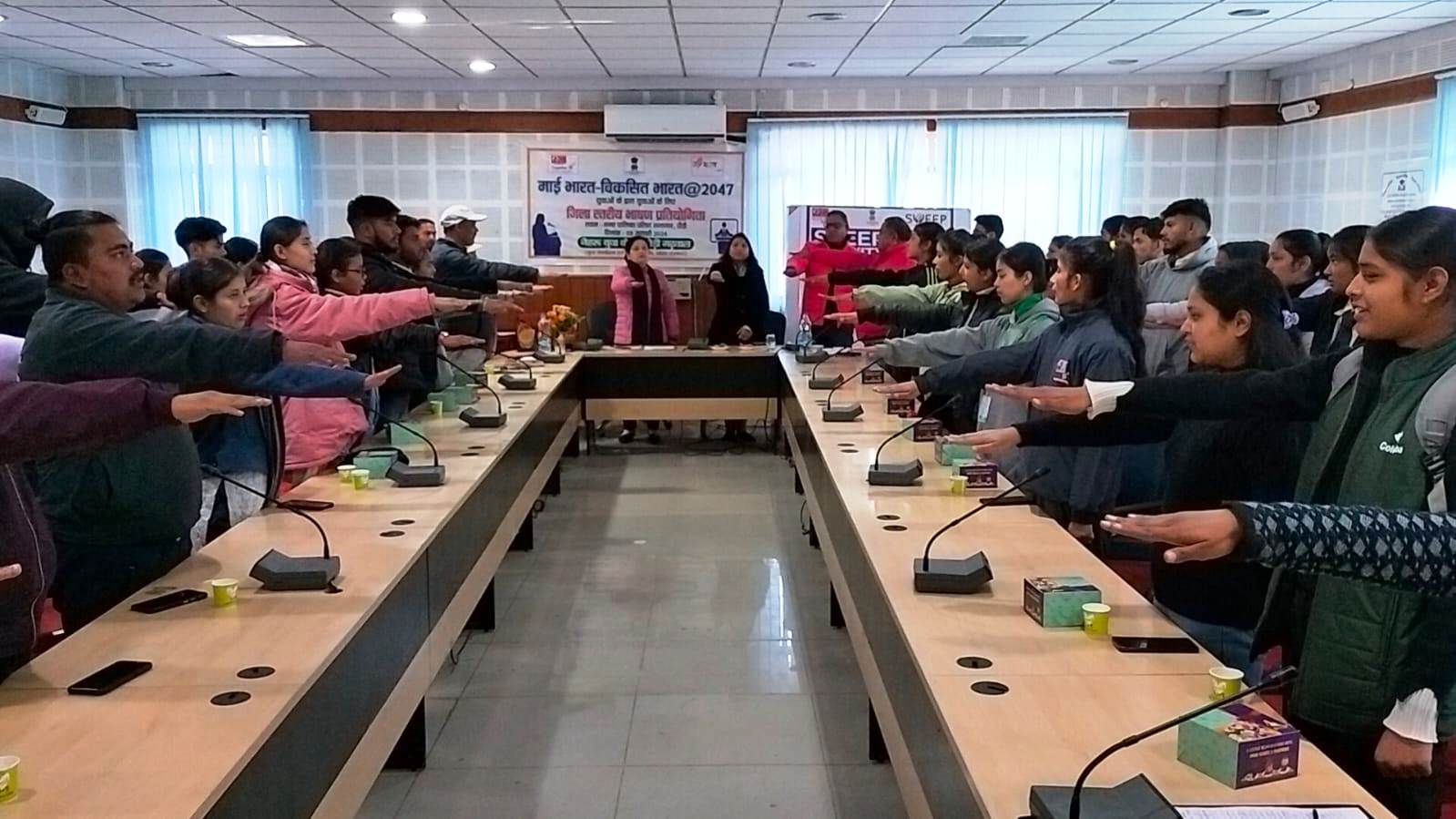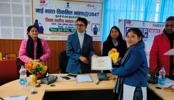 भाषण प्रतियोगिता में आकृति बिष्ट प्रथम, कविता पंवार द्वितीय व ज्योति बलोदी तृतीय स्थान प्राप्त किया। जिले स्तर पर प्रथम स्थान प्राप्त विजेता को राज्य स्तरीय भाषण प्रतियोगिता में प्रतिभाग करने का अवसर मिलेगा। जिसके अंतर्गत राज्य स्तर पर प्रथम स्थान विजेता को एक लाख ,द्वितीय स्थान को पचास हजार तथा तृतीय स्थान पर रहे दो विजेताओं को पच्चीस हजार रूपये की धनराशि का पुरूस्कार मिलेगा। निर्णायक की भूमिका में डॉ. नीलम नेगी, डॉ. मदन मोहन नौडियाल व राकेश रमन शुक्ला रहें। कार्यक्रम का संचालन अद्वैत बहुगुणा द्वारा किया गया। कार्यक्रम के अंत में युवाओं को मतदाता जागरूकता की शपथ भी दिलाई गई। कार्यक्रम में शालिनी पटवाल, सुधांशु नौडियाल, पारस रावत, ज्योति, आयुषी नेगी, प्रीती रावत, अभिलाषा, यशराज बिष्ट, अमित बर्तवाल, सोहन कुमार सहित अन्य युवा उपस्थित थे।