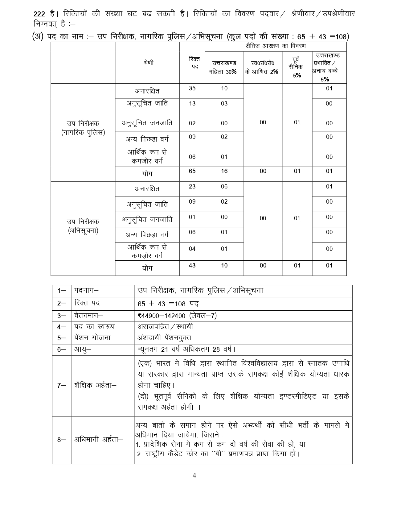 हरिद्वार : UKPSC ने गृह विभाग के अंतर्गत उपनिरीक्षक (नागरिक पुलिस / अभिसूचना), अग्निशमन द्वितीय अधिकारी एवं गुल्मनायक पुरूष (PAC/IRB) के रिक्त 222 पदों पर सीधी भर्ती द्वारा चयन हेतु पात्र अभ्यर्थियों से ऑनलाईन आवेदन-पत्र आमंत्रित किये जाते हैं।