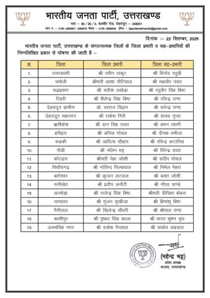 2022 – भाजपा जिलाध्यक्ष (उत्तरकाशी)
