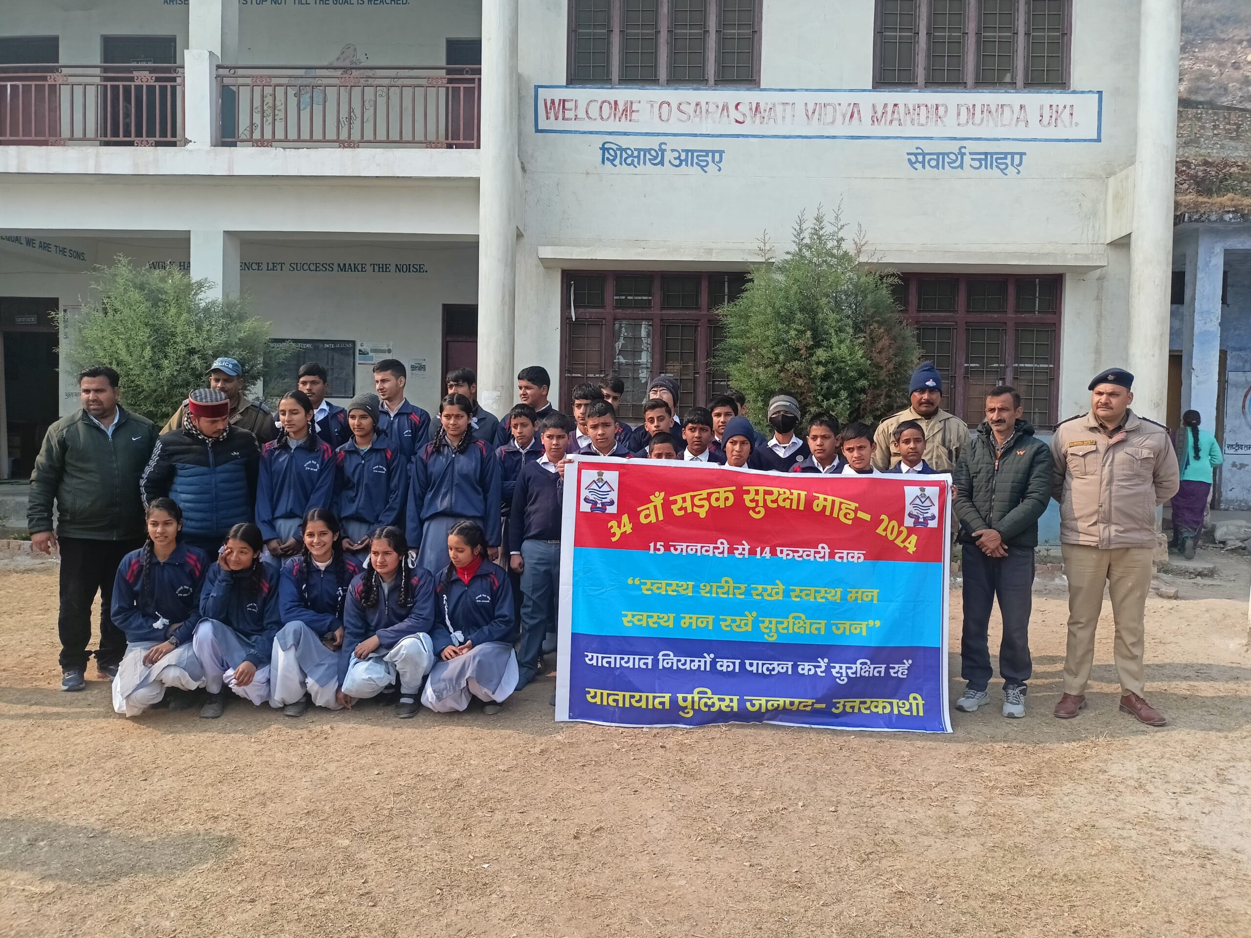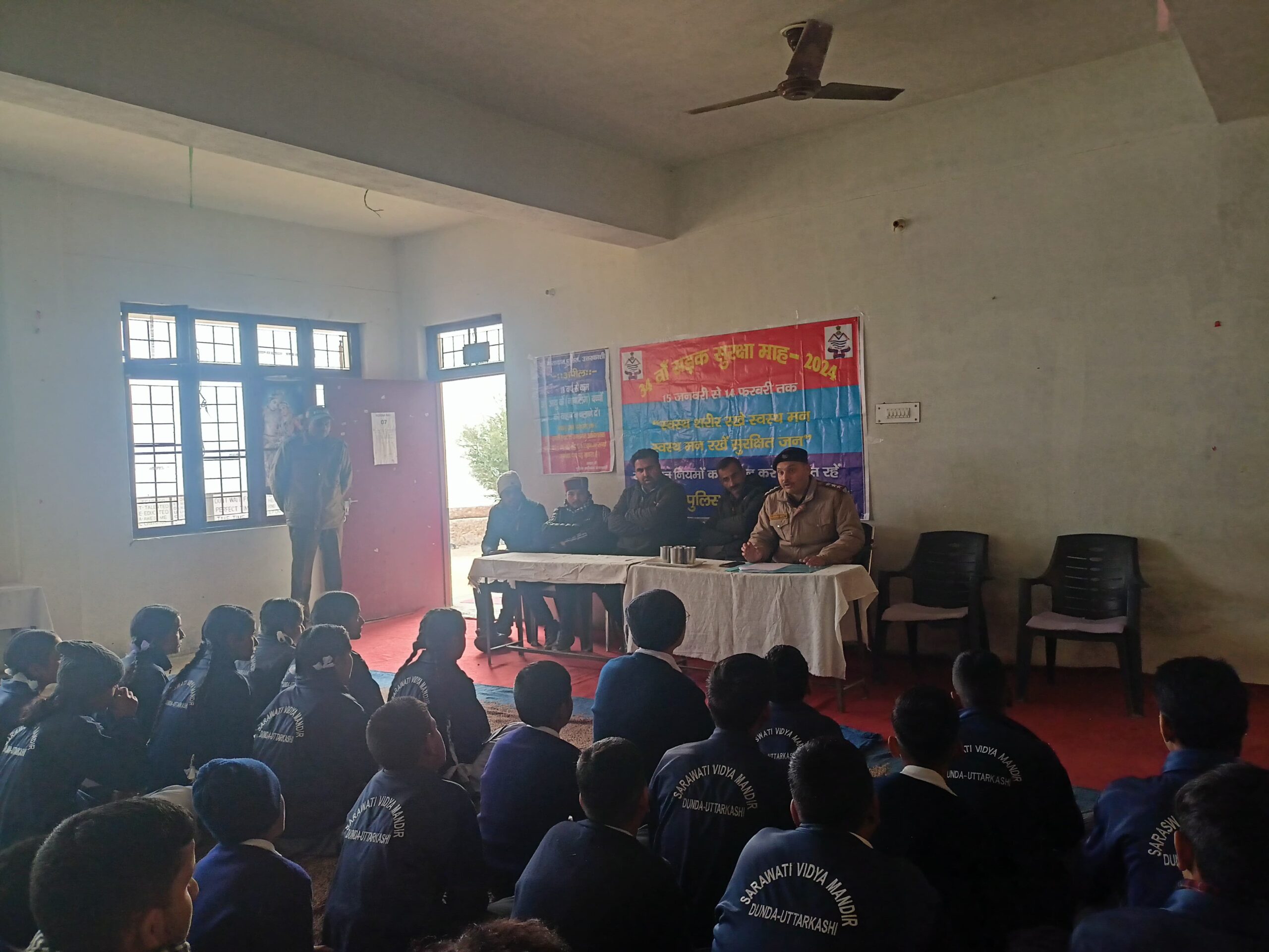 उत्तरकाशी (कीर्ति निधि सजवाण): सड़क सुरक्षा एवं यातायात नियमों के प्रति आमजन को जागरुक करने के उद्देश्य से प्रदेशभर में चलाए जा रहे 34वें सड़क सुरक्षा माह के दूसरे दिन अर्पण यदुवंशी, पुलिस अधीक्षक उत्तरकाशी के दिशा–निर्देशन में निरीक्षक यातायात राजेन्द्र नाथ के नेतृत्व में यातायात पुलिस टीम द्वारा सरस्वती विद्या मन्दिर इण्टर कॉलेज डुण्डा में सड़क सुरक्षा जनजागरुकता शिविर आयोजित किया गया। इस दौरान यातायात पुलिस द्वारा छात्र/छात्राओं को यातायात नियमों की विस्तृत जानकारी प्रदान कर जागरुक किया गया। उनके द्वारा सभी से यातायात नियमों का पालन करने, बिना हेलमेट के दोपहिया वाहन न चलाने, ओवर स्पीड मे न चलने, नशे की हालत में वाहन न चलाने, वाहन चलाते समय मोबाइल फोन का प्रयोग न करने तथा 18 वर्ष से कम उम्र के बच्चों से वाहन न चलाने की अपील की गयी। इसके अतिरिक्त यातायात पुलिस टीम द्वारा उत्तरकाशी मेन बाजार में सब्जी मण्डी के पास स्टाल लगाकर आमजन/वाहन चालकों को ट्रैफिक नियमों की जानकारी देते हुये ट्रैफिक सिग्नलों के बारे मे जागरुक किया गया।
