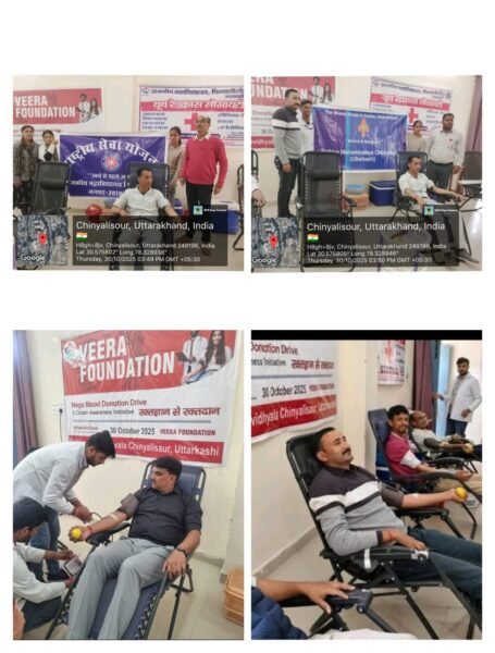 चिन्यालीसौड़: राजकीय महाविद्यालय चिन्यालीसौड़ में यूथ रेड क्रॉस, राष्ट्रीय सेवा योजना (एनएसएस) तथा रोवर रेंजर्स इकाई के संयुक्त तत्वावधान में वीरा फाउंडेशन देहरादून के सहयोग से 30 अक्टूबर को स्वैच्छिक रक्तदान शिविर का सफल आयोजन किया गया। शिविर में बड़ी संख्या में छात्र-छात्राएं, प्राध्यापक और कर्मचारी उत्साहपूर्वक शामिल हुए तथा रक्तदान किया।